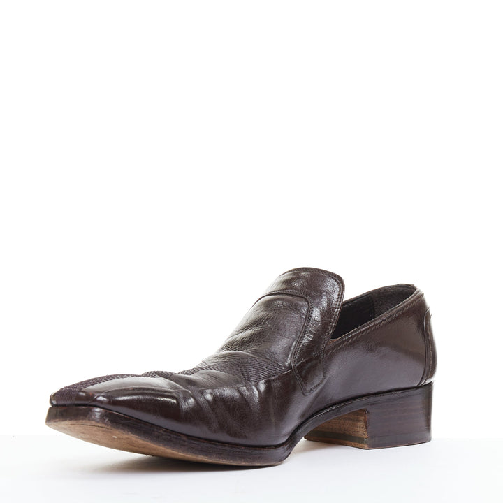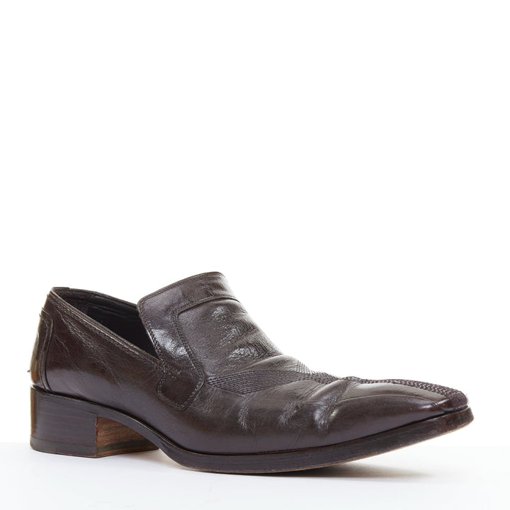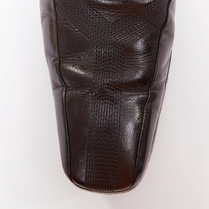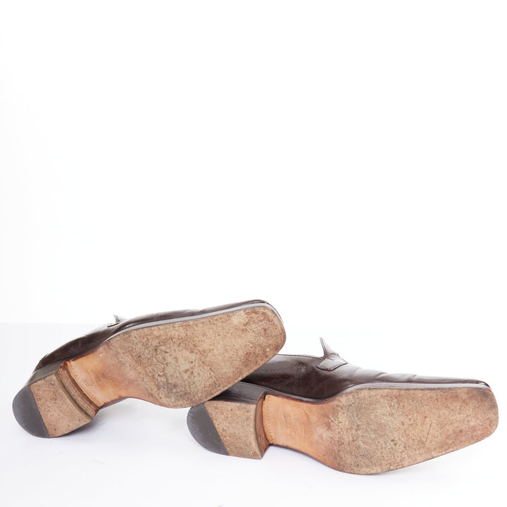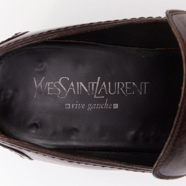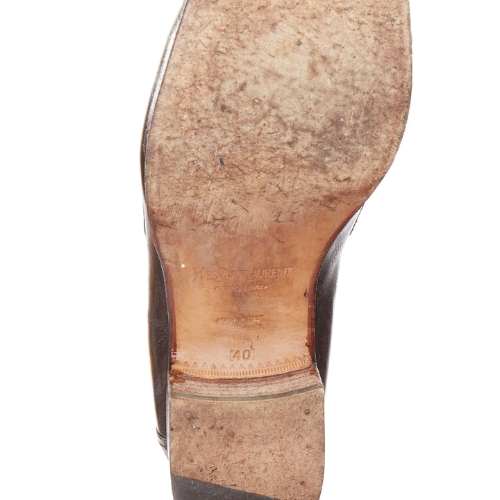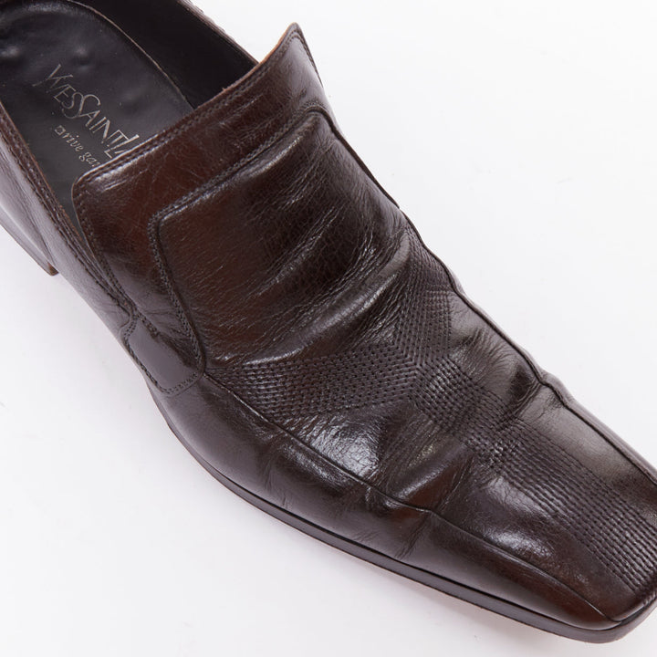 YVES SAINT LAURENT dark brown leather Y overstitch square toe loafers UK7 EU41