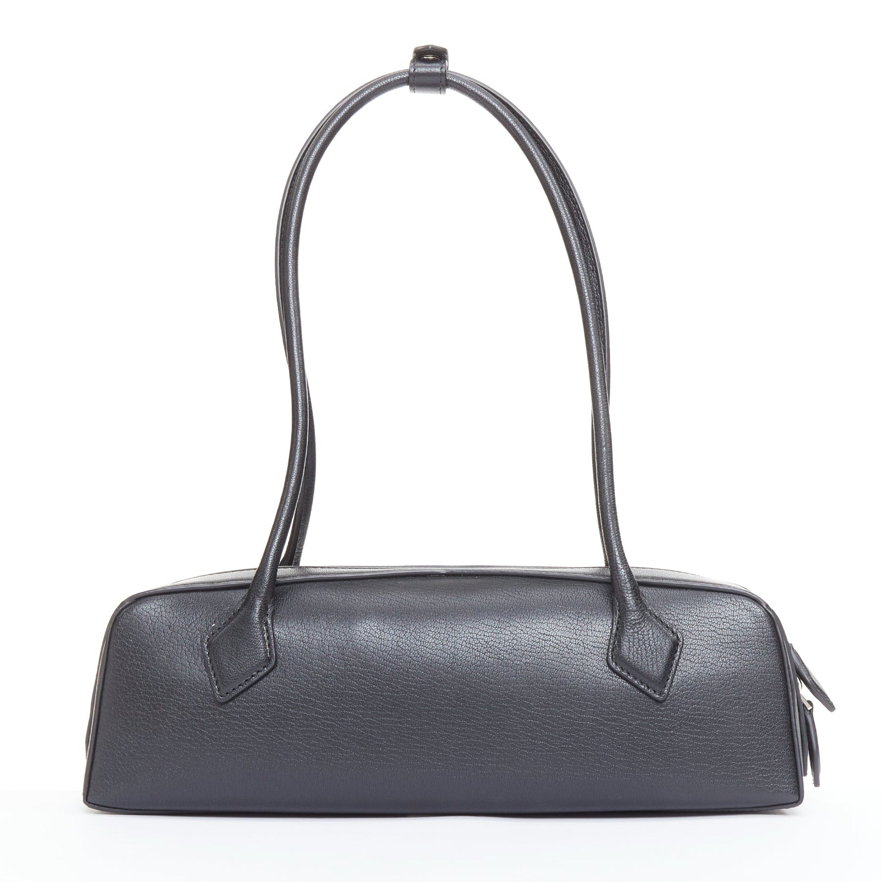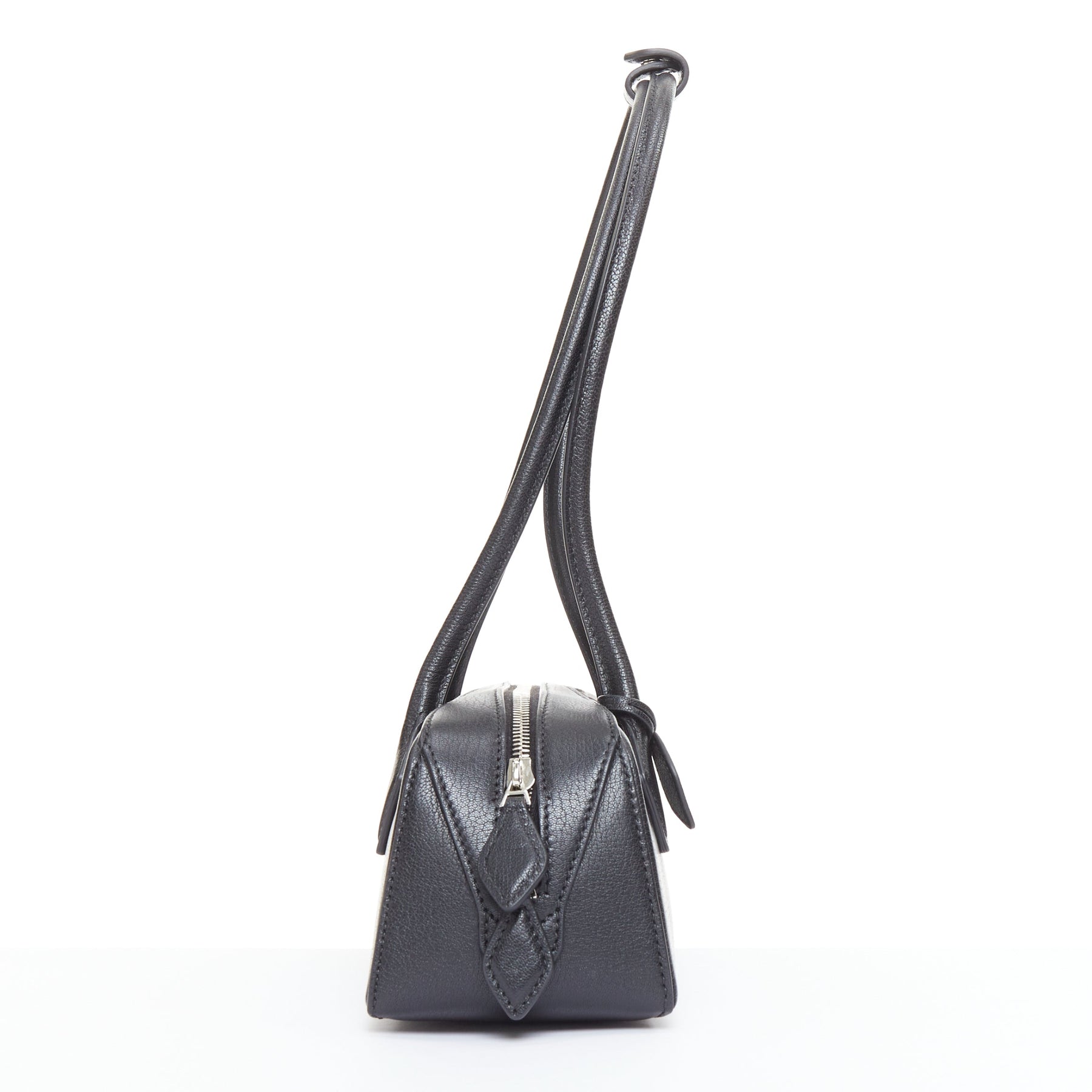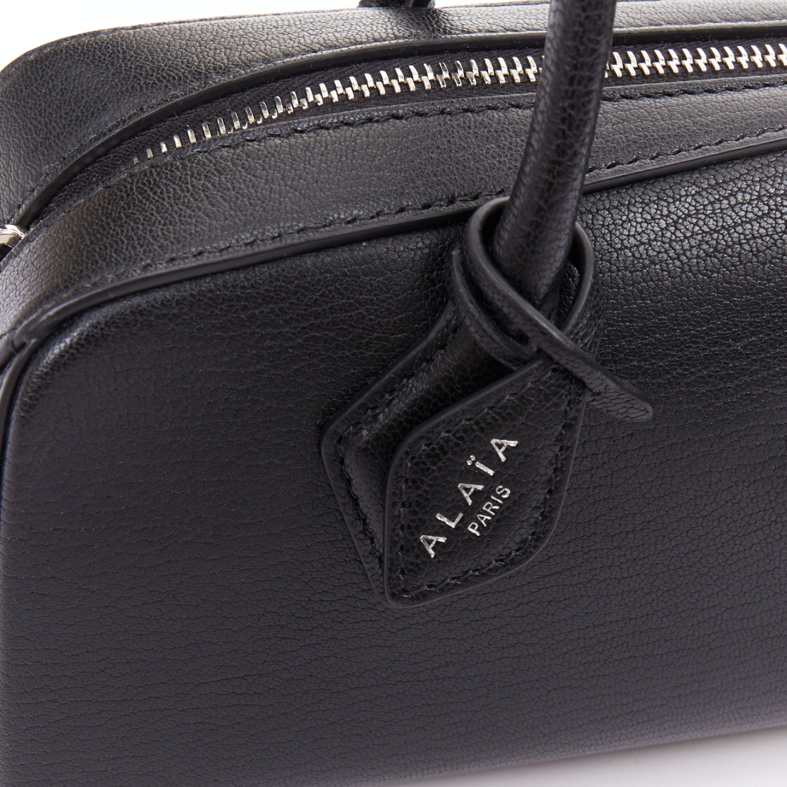 ALAIA Le Teckel black leather elongated long handle double zip bag