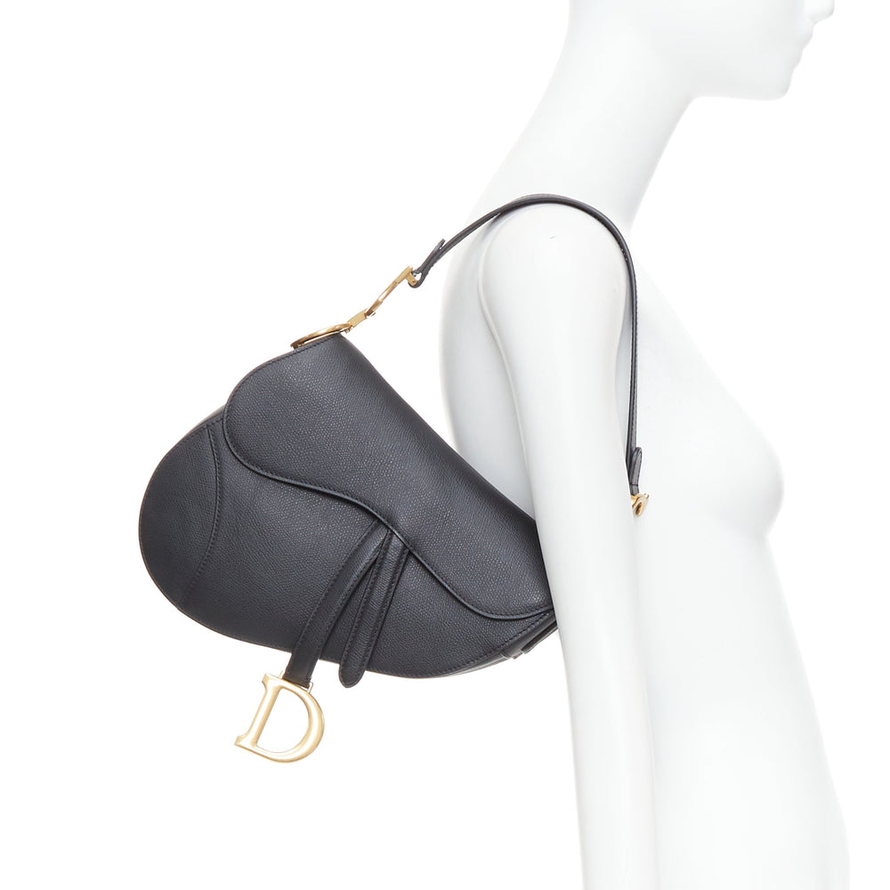CHRISTIAN DIOR Saddle black textured leather gold CD shoulder bag