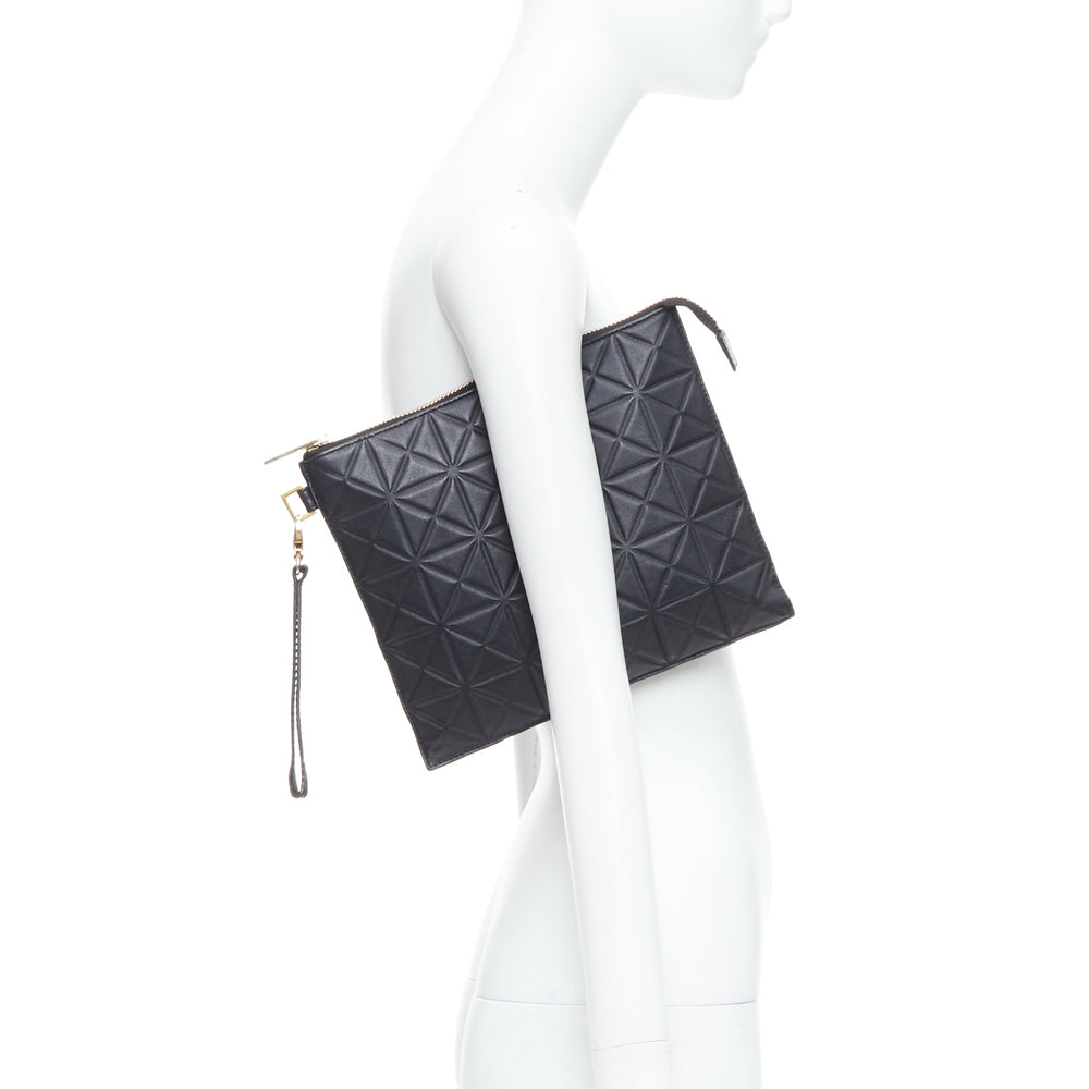 rare GARETH PUGH black leather geometric zip wrist clutch bag