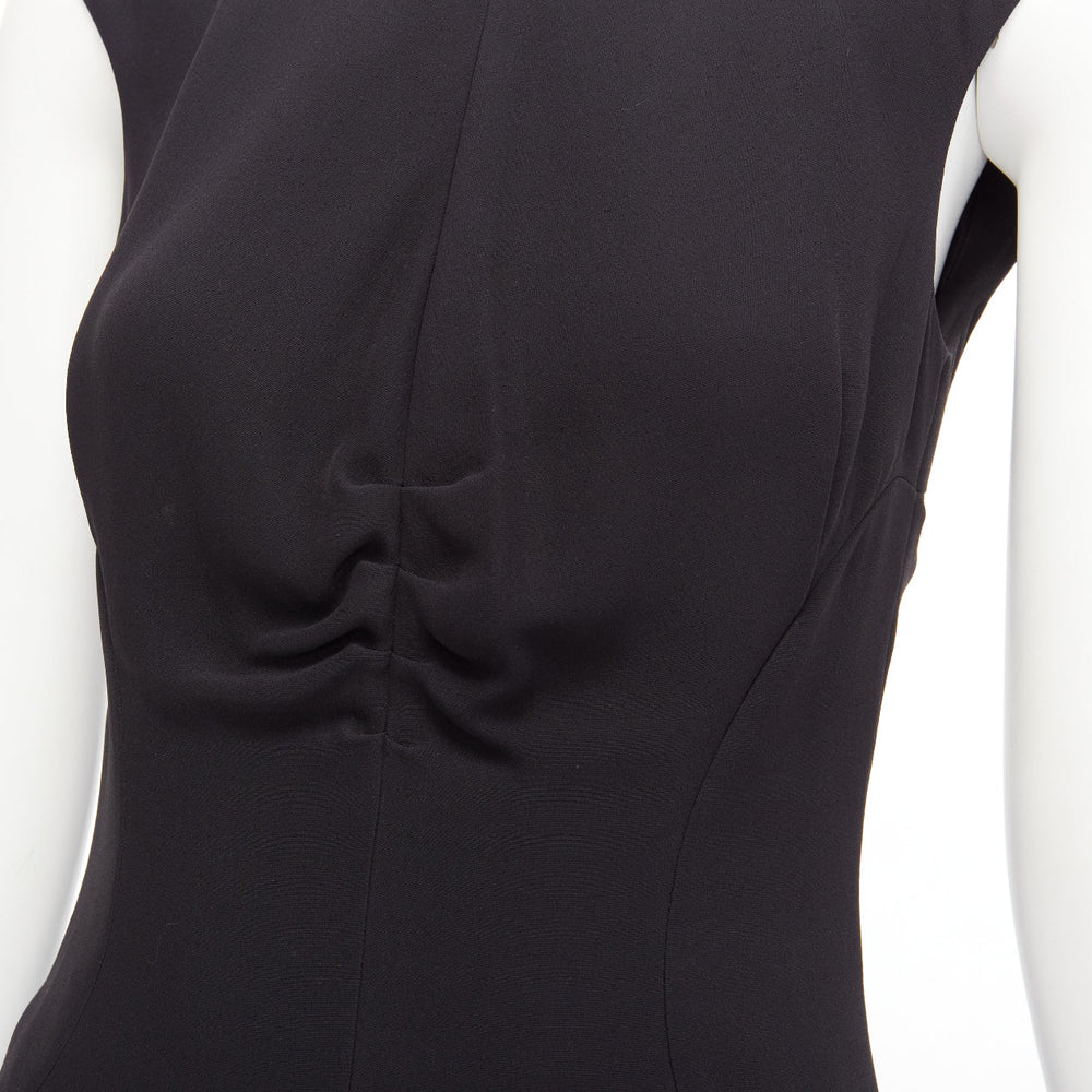 CHANEL 08P black 100% silk ruched front boned waist shift dress FR34 XS