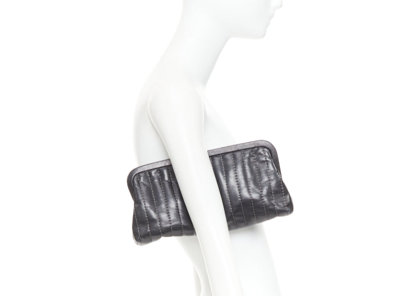 CHANEL 2005 Mademoiselle Ligne black vertical quilting lambskin kisslock clutch bag