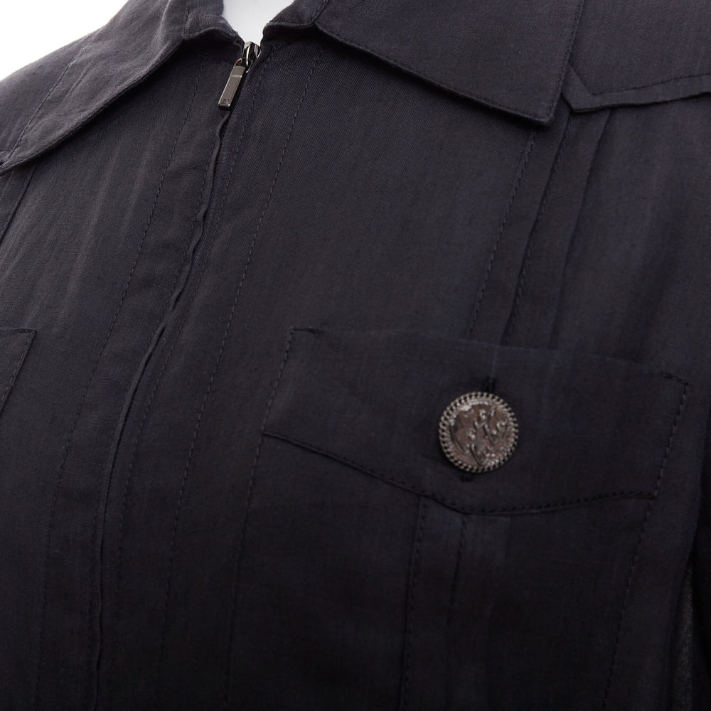 CHANEL Coco Cuba black ramie 4 pocket zip pleated mini dress FR34 XS
