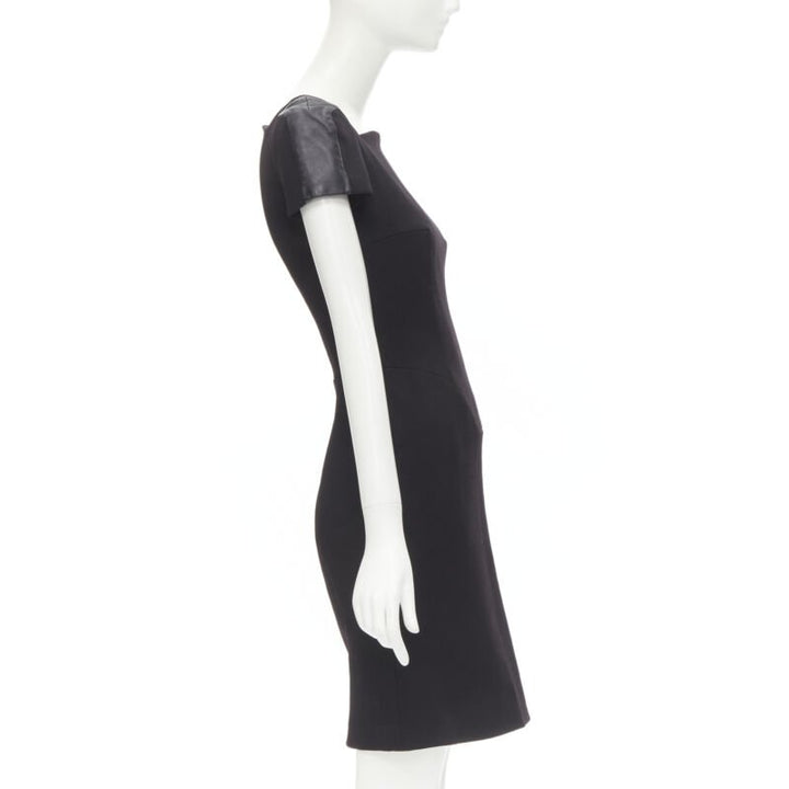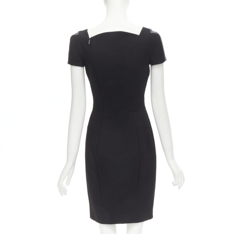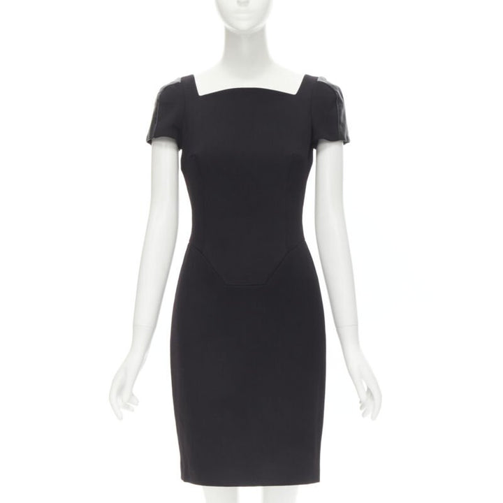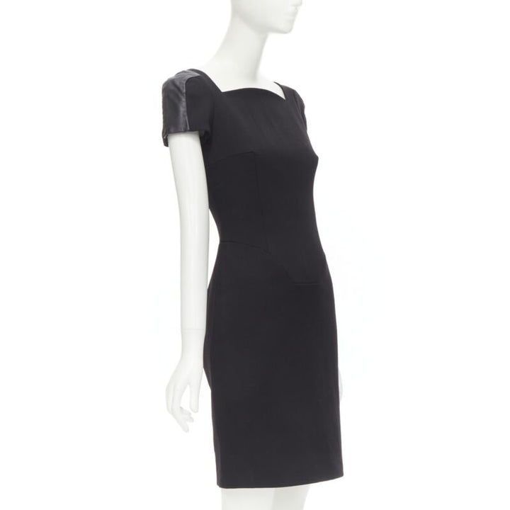 VERSACE square neckline leather cap sleeve bodycon seam sheath dress IT38 XS