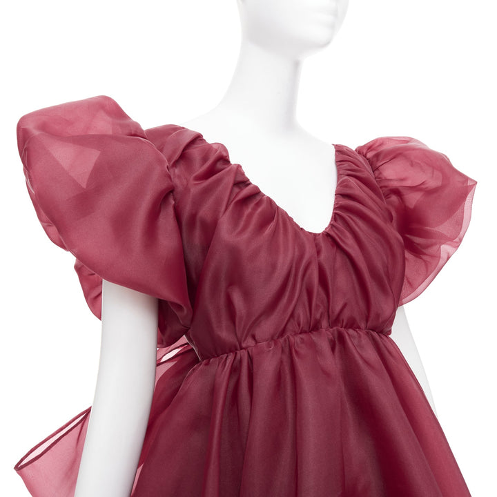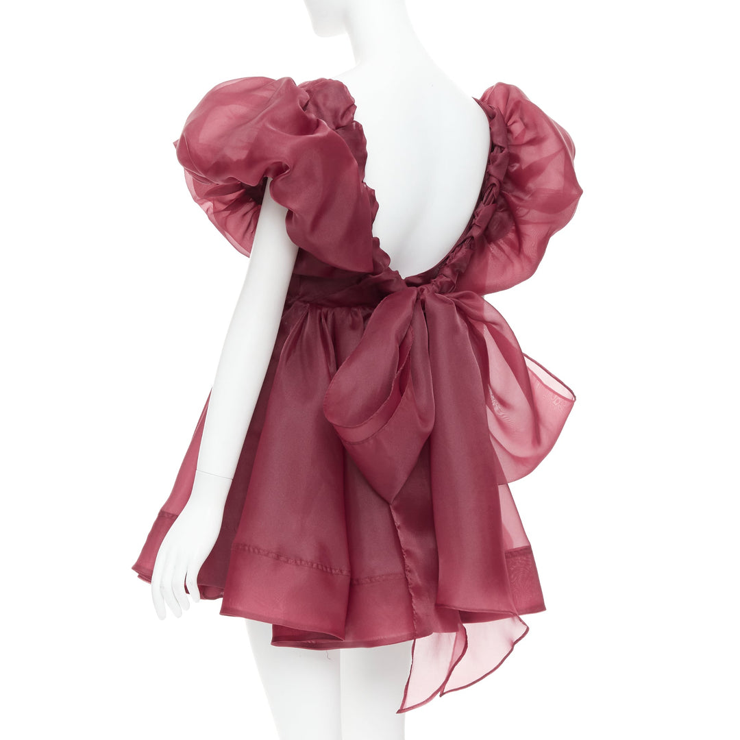 AJE Greta maroon burgundy organza puff sleeve mini dress UK6 XS
