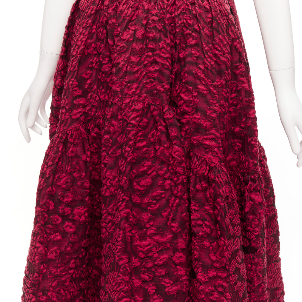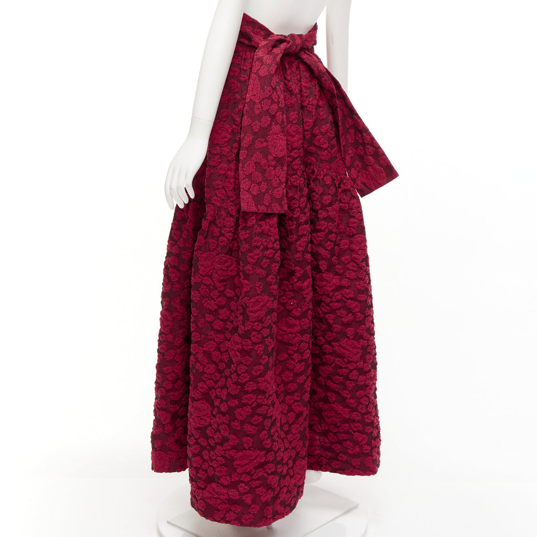 ANAIS JOURDEN red cotton blend floral 3D jacquard tie full gown skirt FR36 S