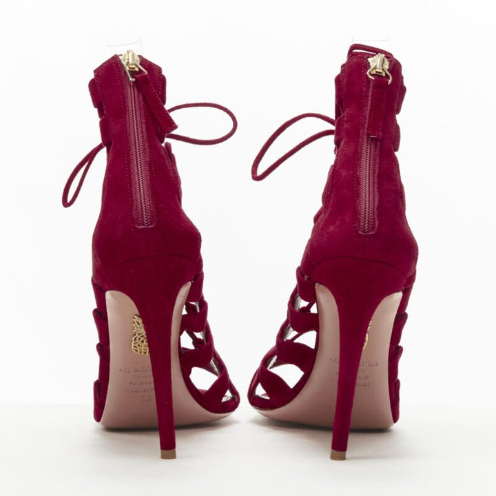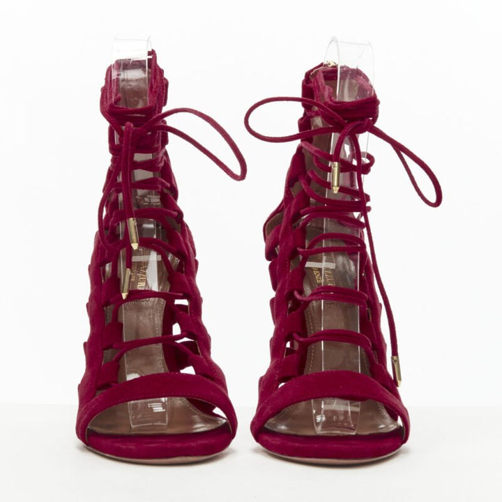 AQUAZZURA Amazon dark red suede lace up sandals high heels EU38