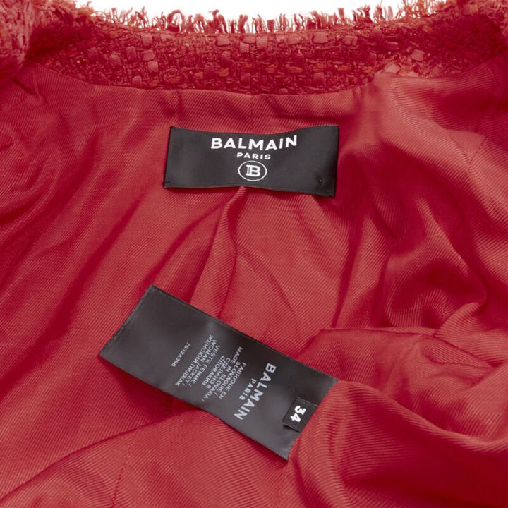BALMAIN red tweed gold military button 4 pocket power blazer jacket FR34 XS