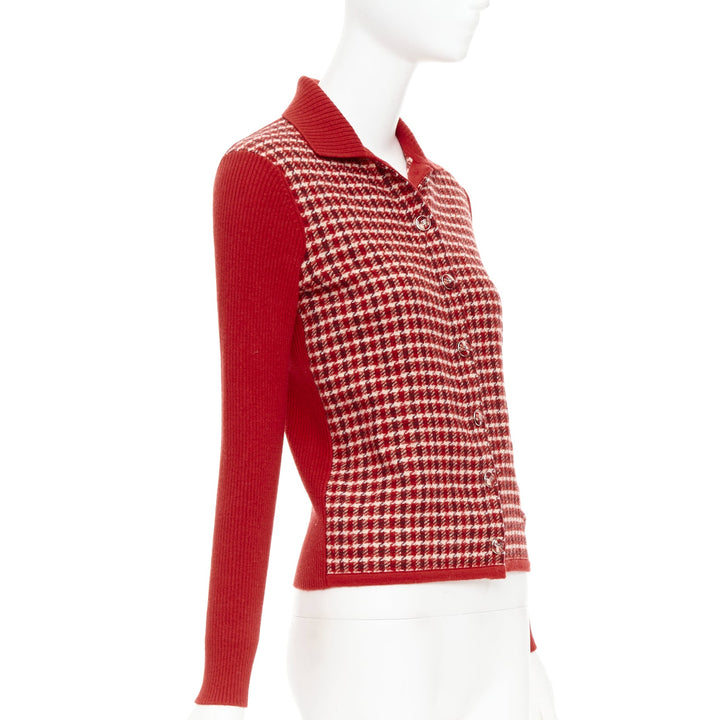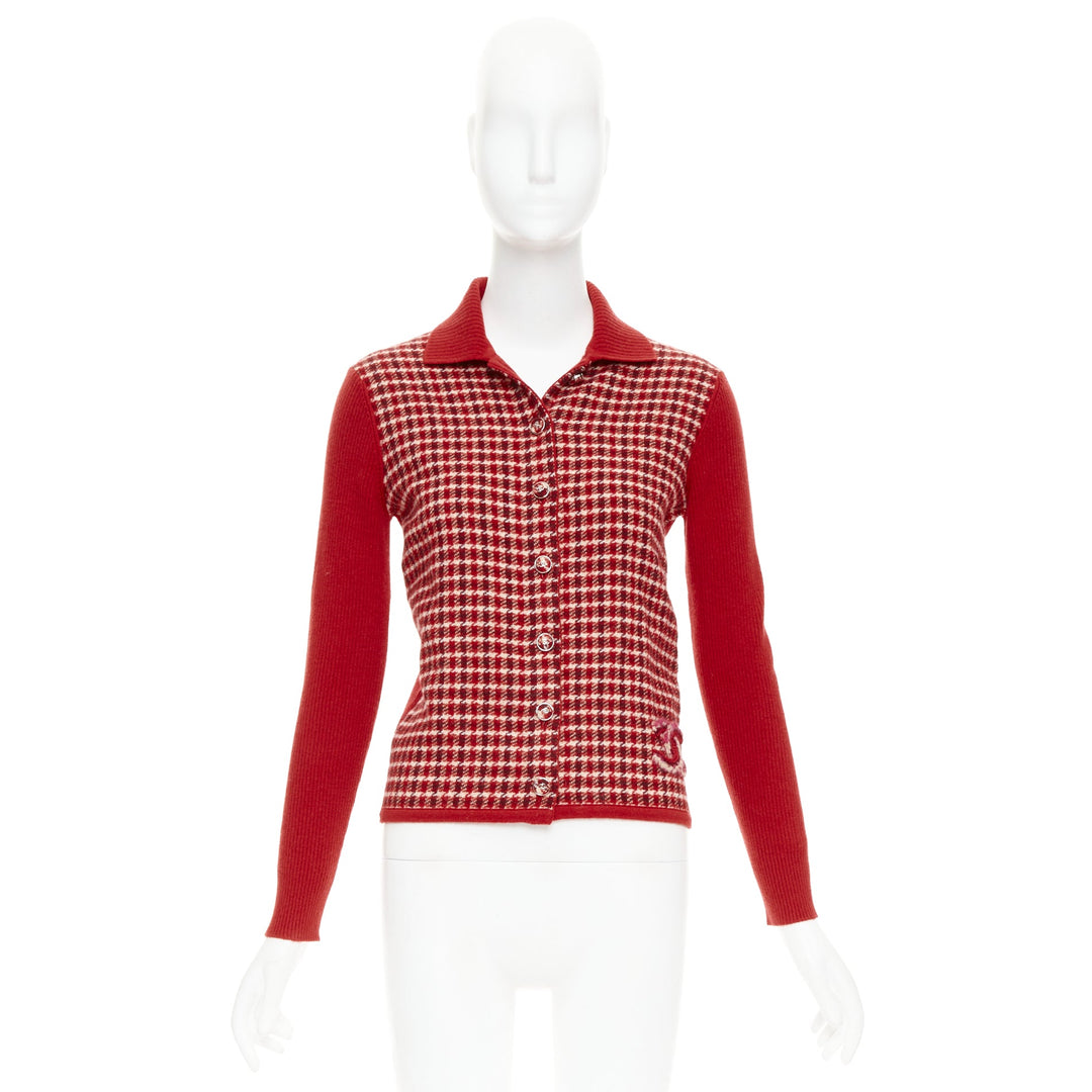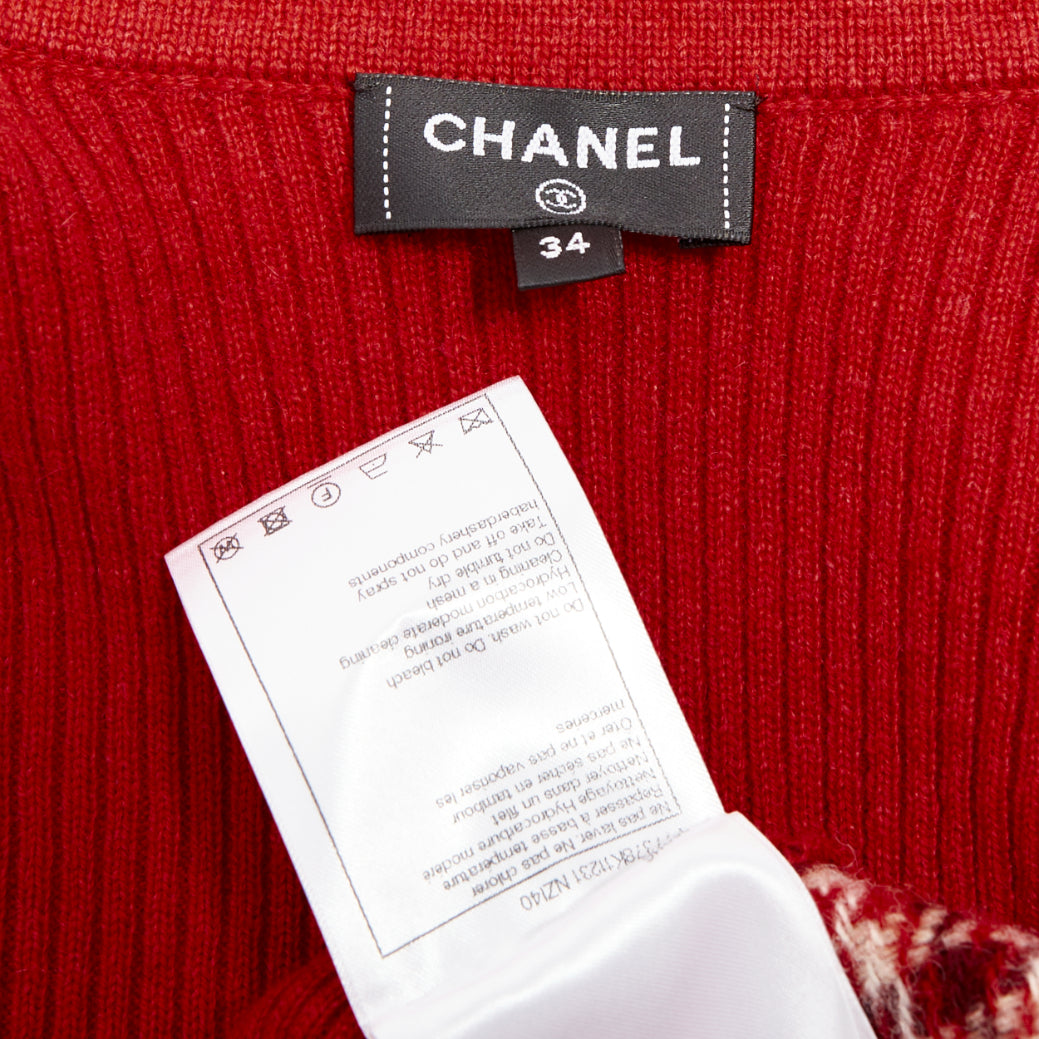 CHANEL 24N red beige cashmere blend CC applique cardigan FR34 XS GDragon