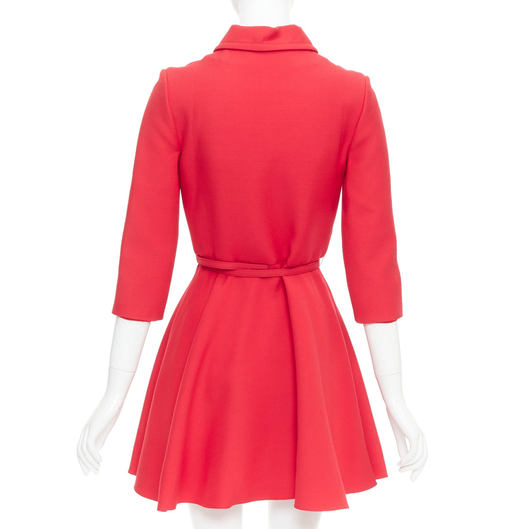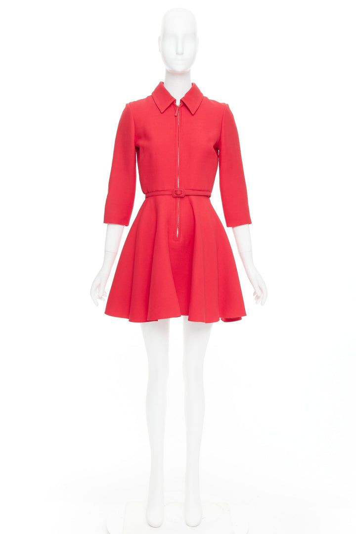 CHRISTIAN DIOR 2019 red wool silk half zip belted flare dress FR36 S