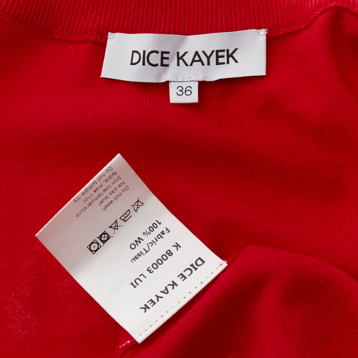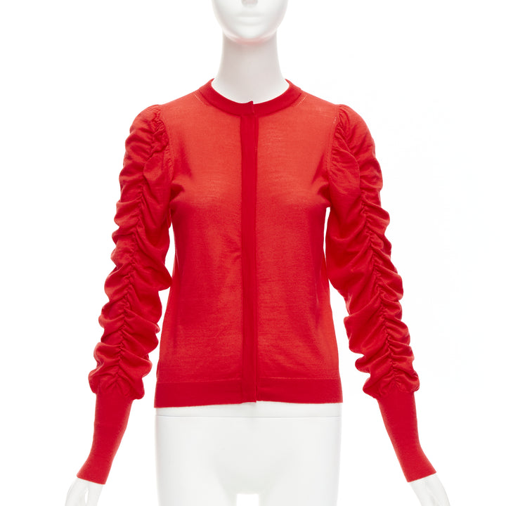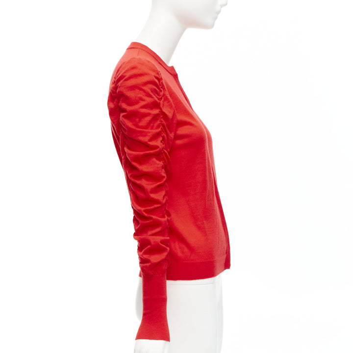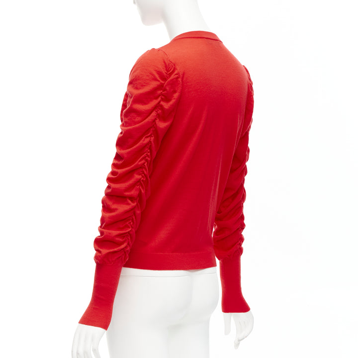 DICE KAYEK red 100% wool ruched sleeves crew neck cardigan sweater FR36 S