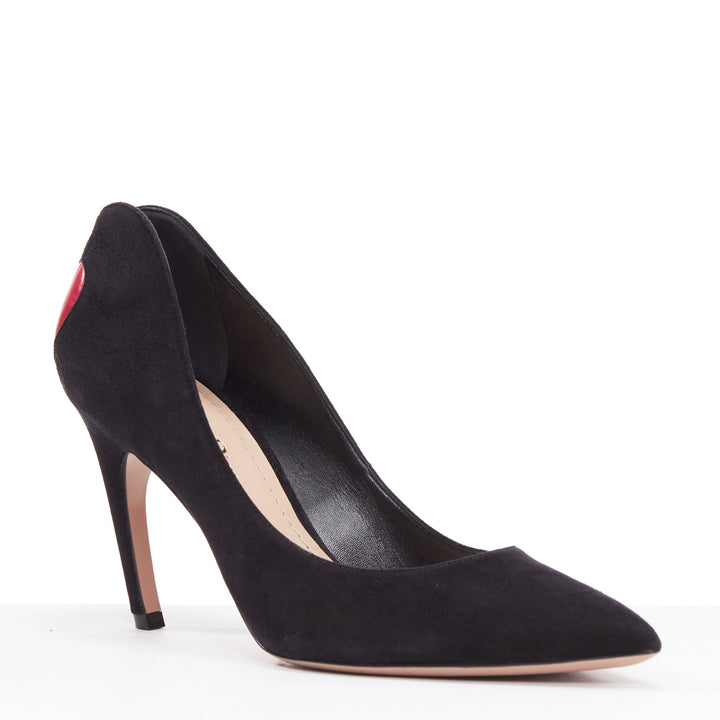 DIOR Dioramour red leather heart black suede curved heeled pumps EU38