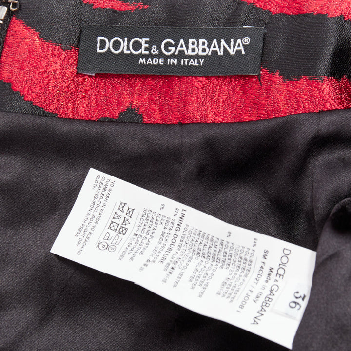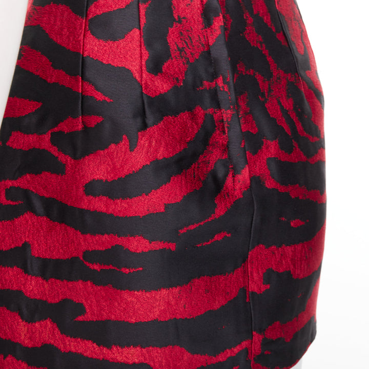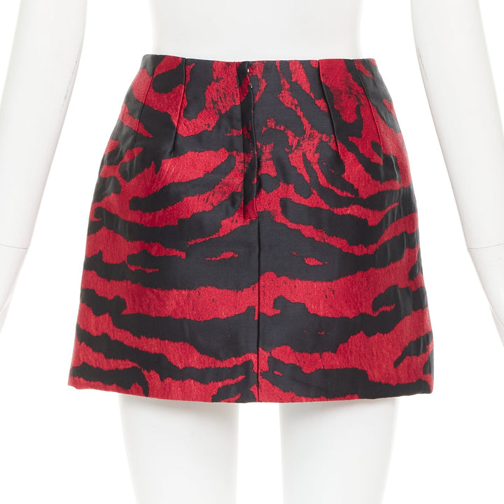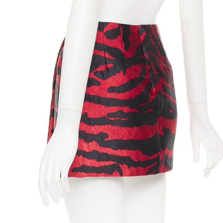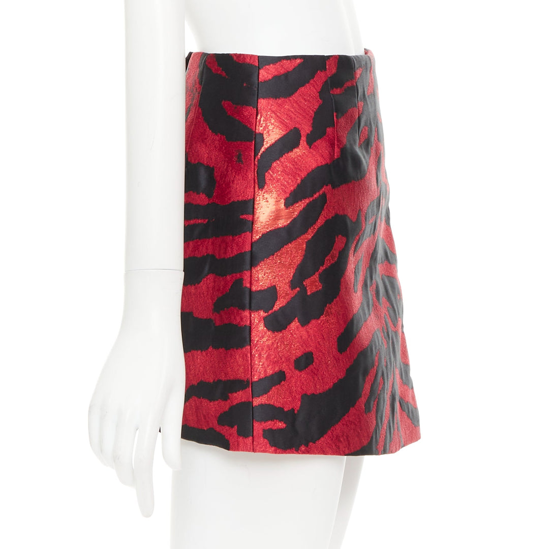 DOLCE GABBANA red black tiger stripe metallic jacquard high waist mini skirt IT36 XS