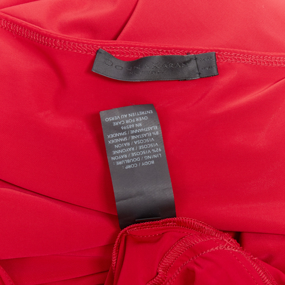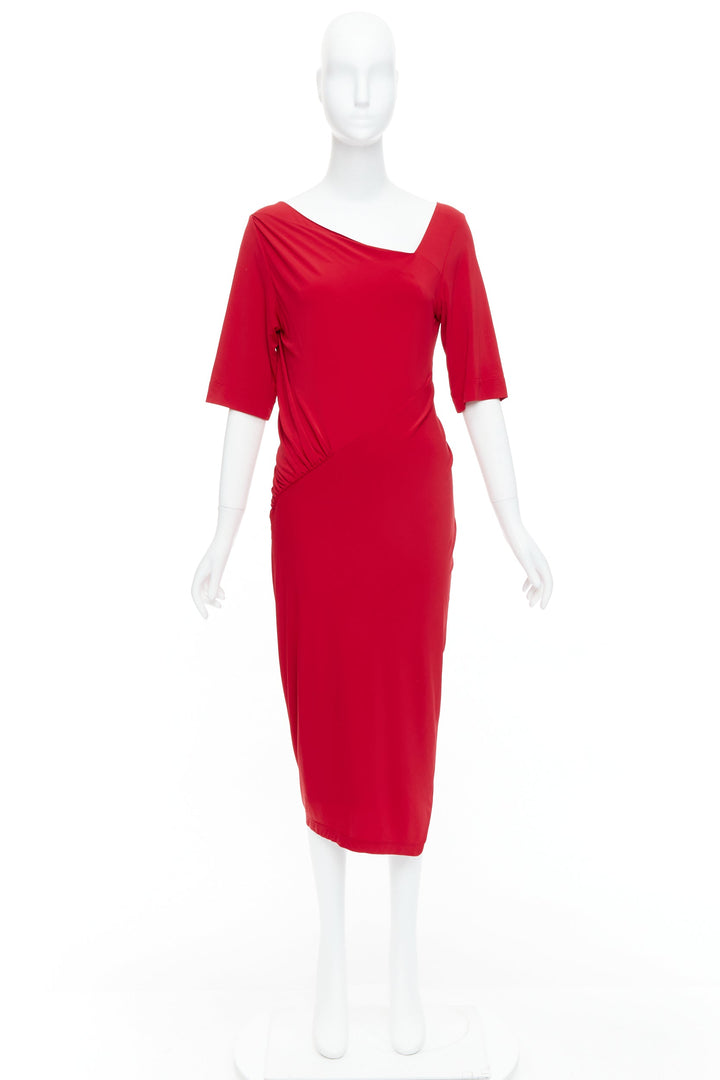 DONNA KARAN red asymmetric neck tuck draped midi dress L