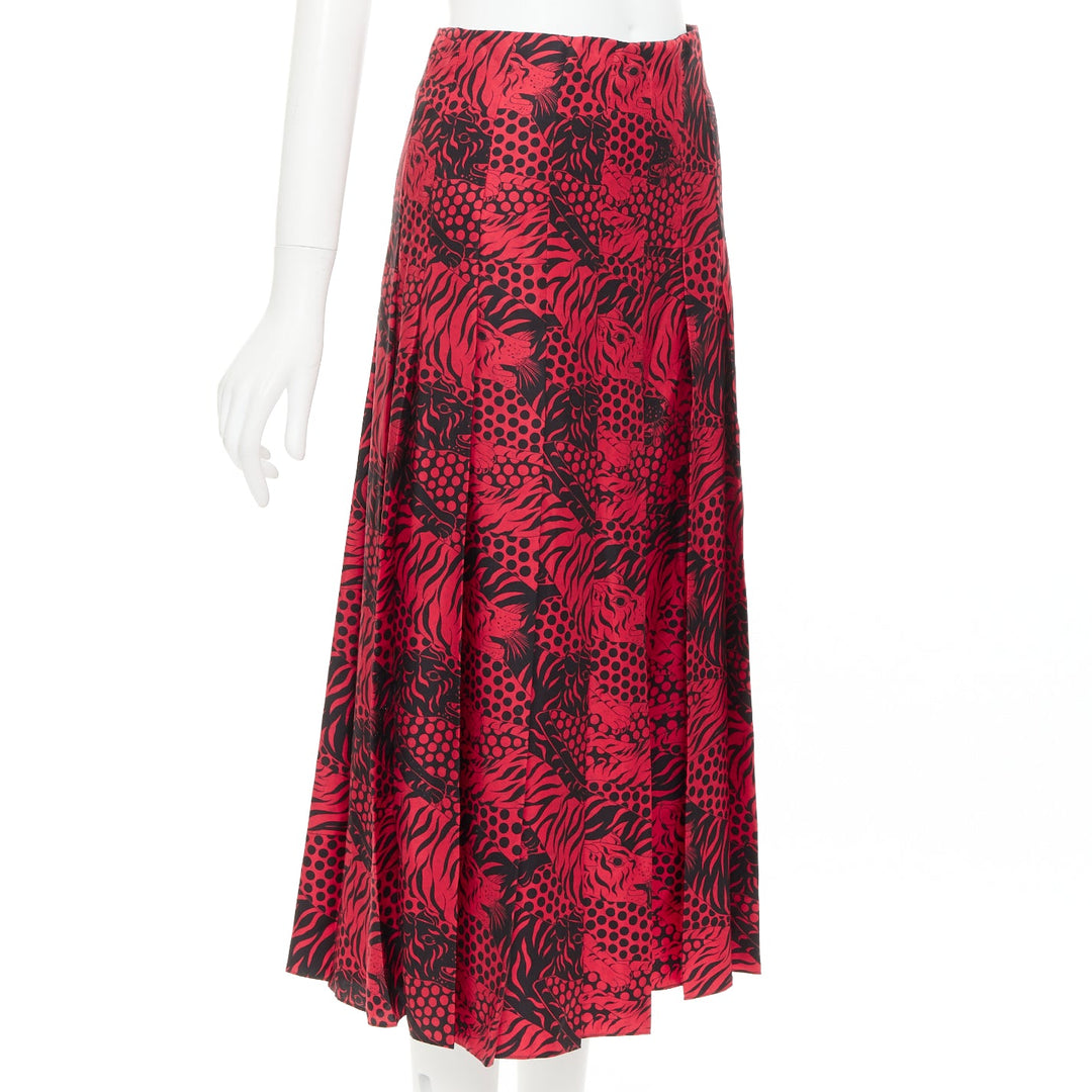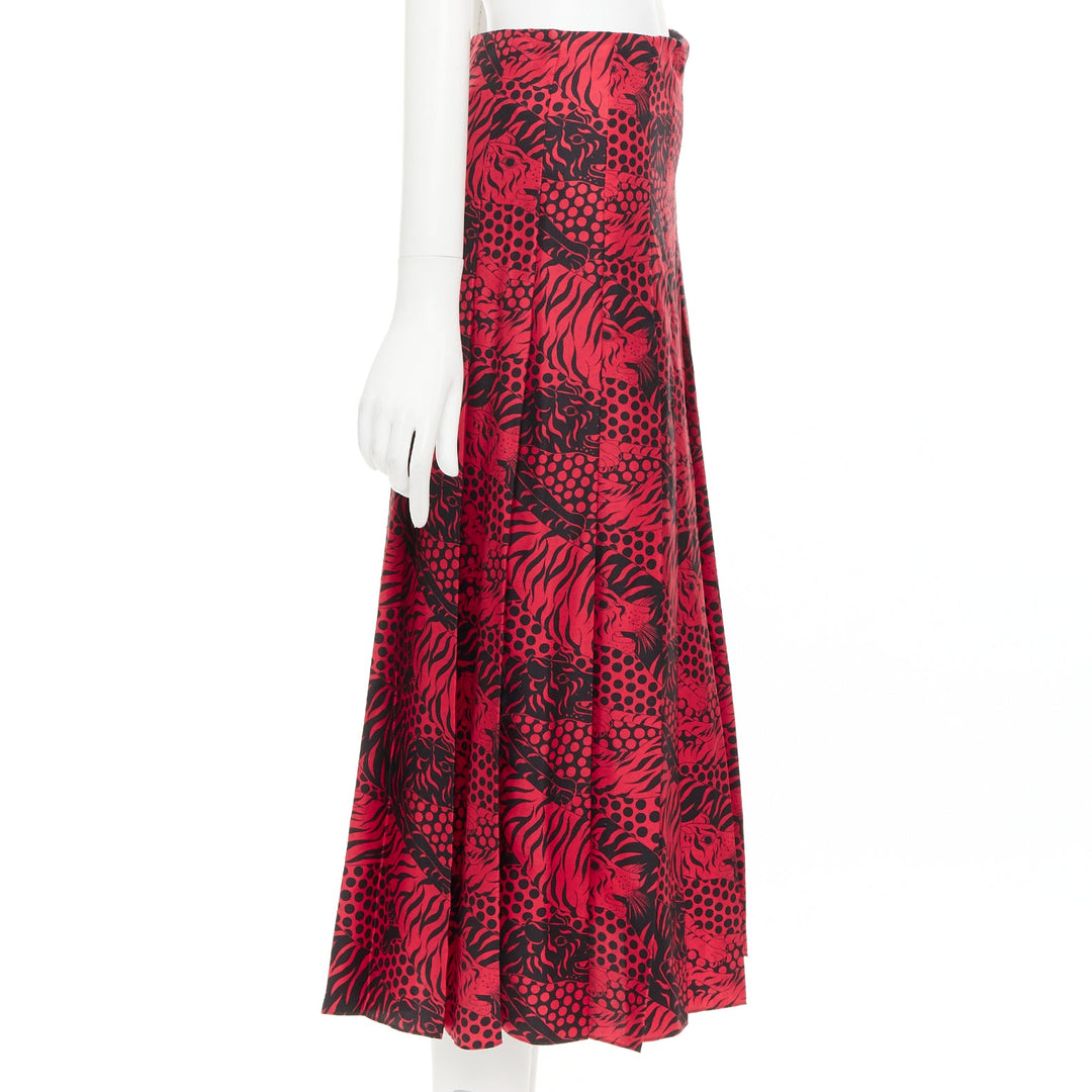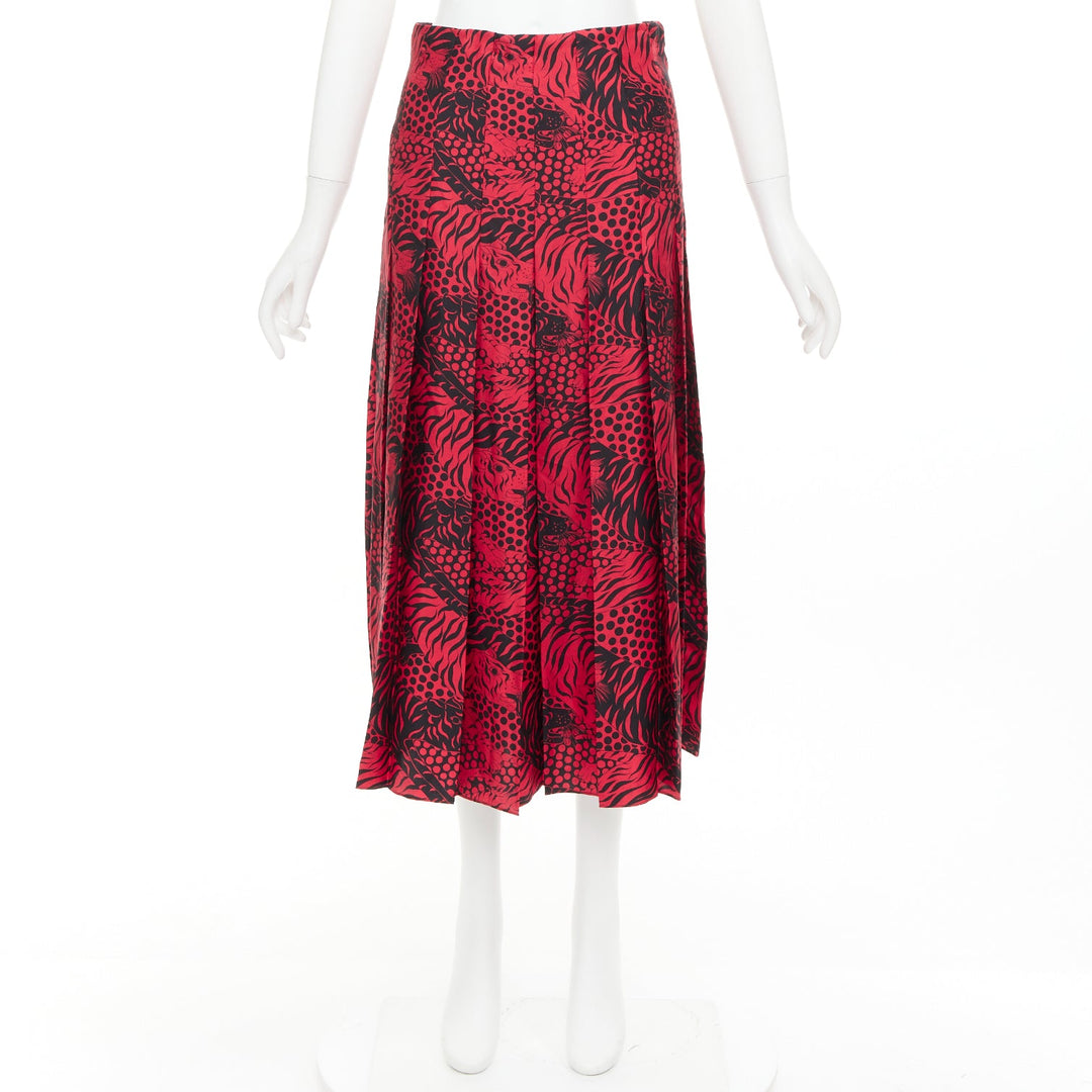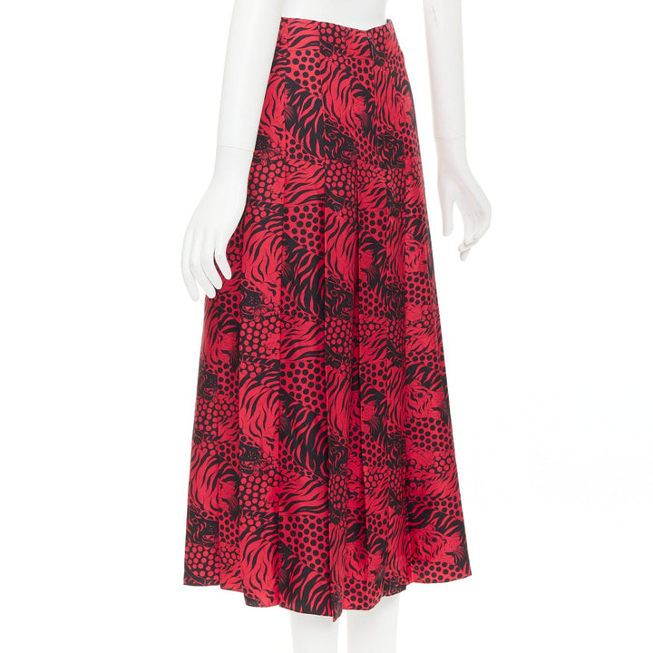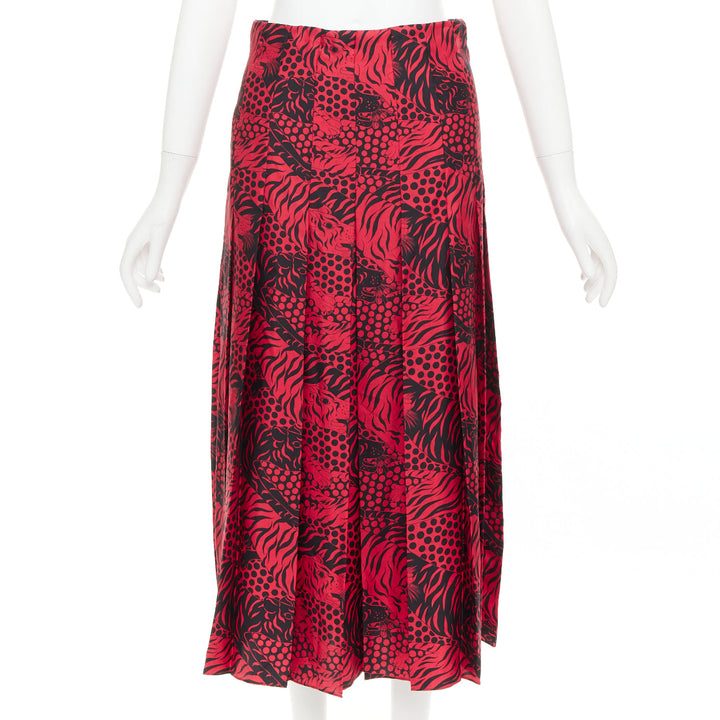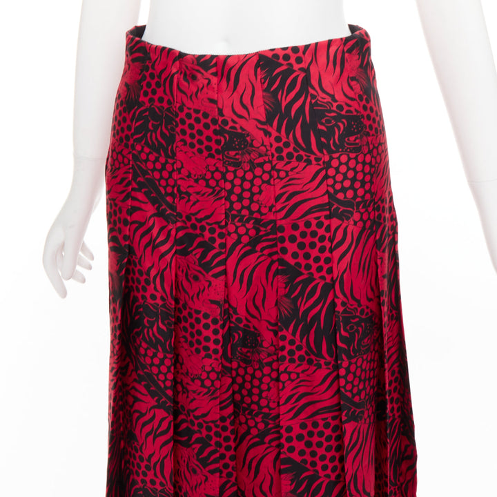 GUCCI 2018 Michele black red 100% silk tiger print pleated midi skirt IT38 XS