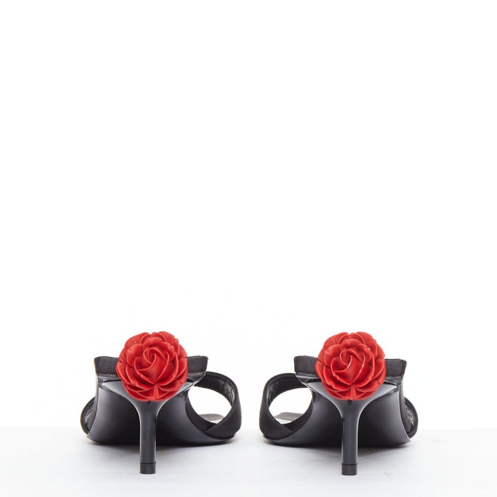 MAGDA BUTRYM red floral black satin embellished mid mule heels EU37.5