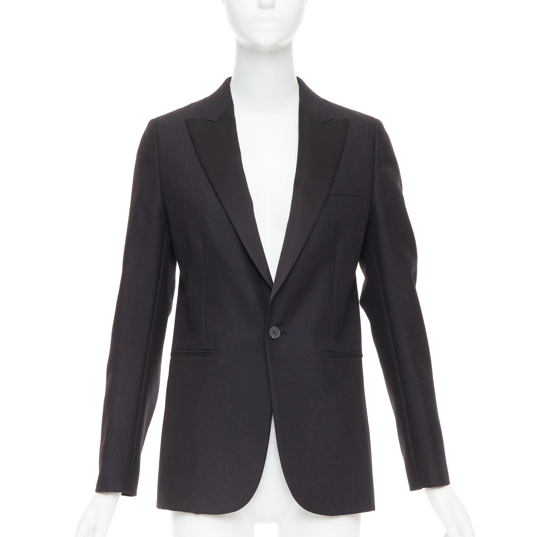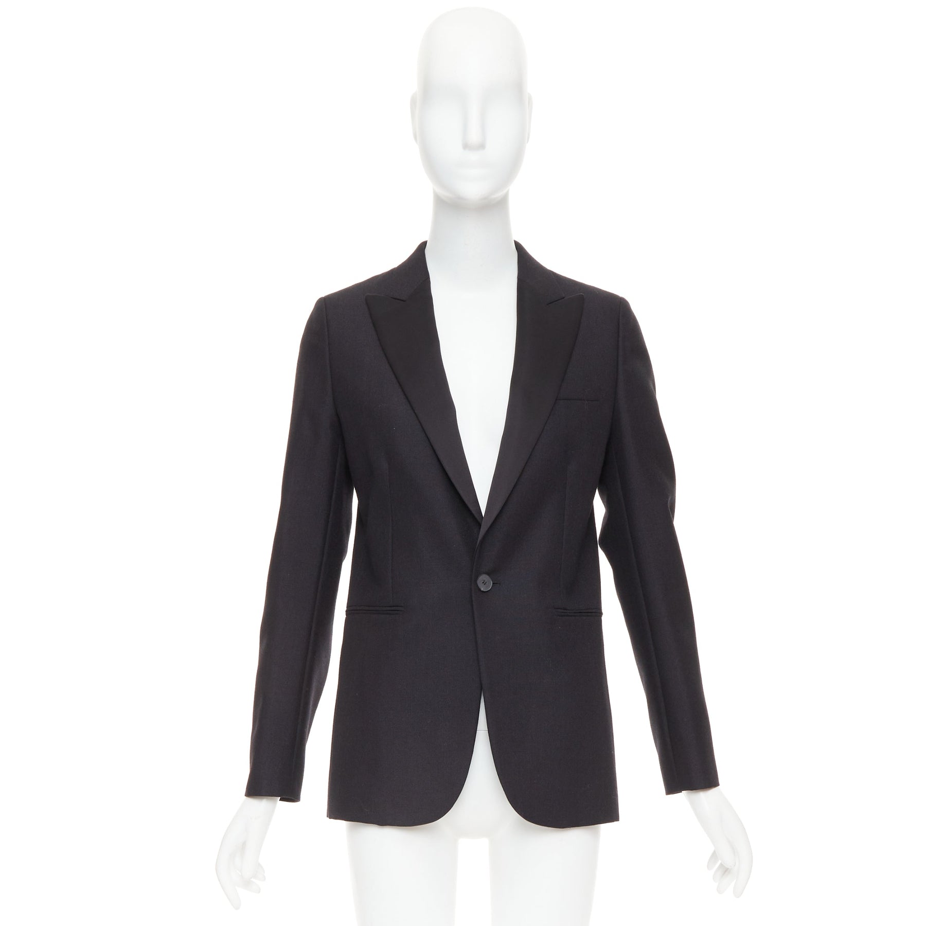 CHRISTIAN DIOR black wool mohair boxy peak collar tux jacket FR36