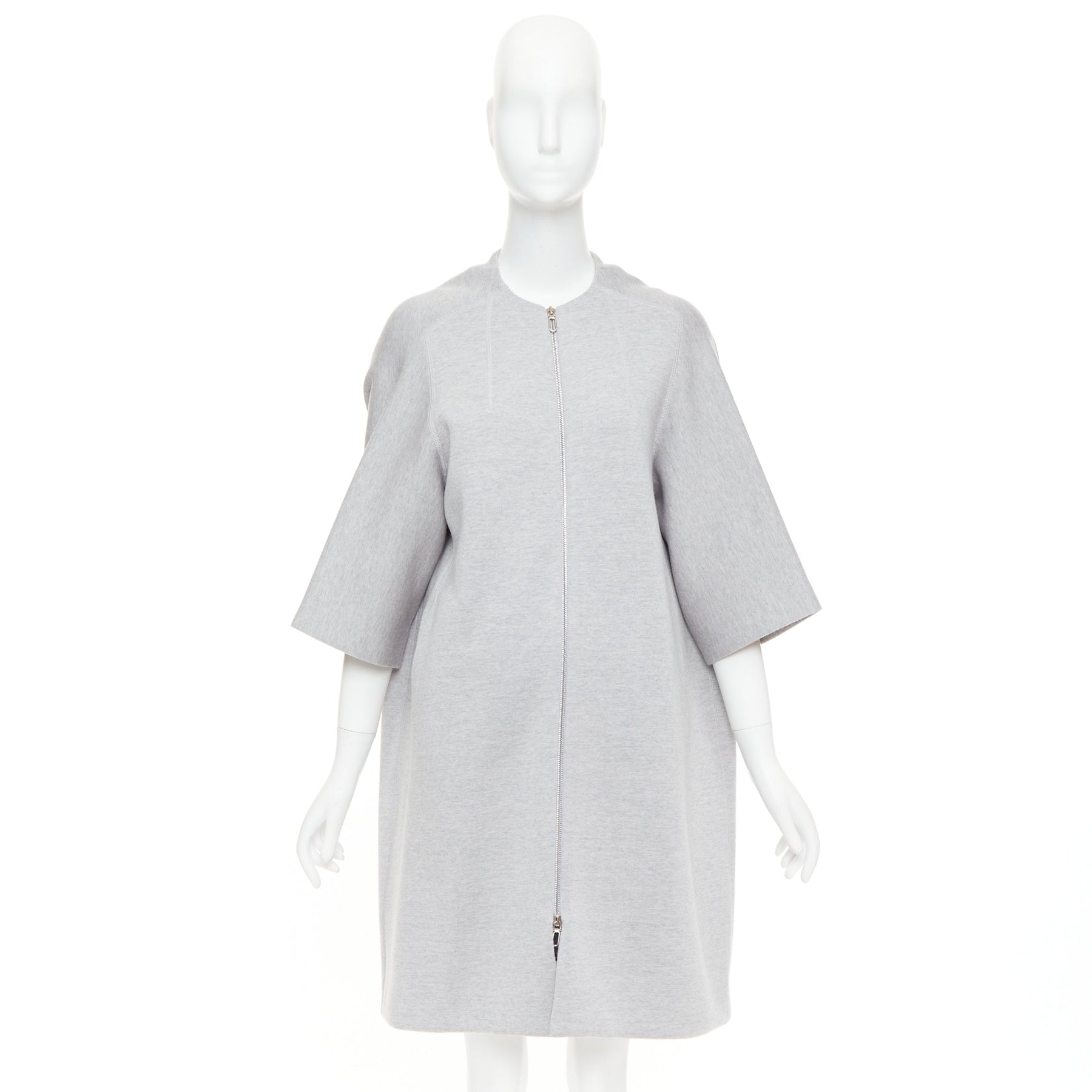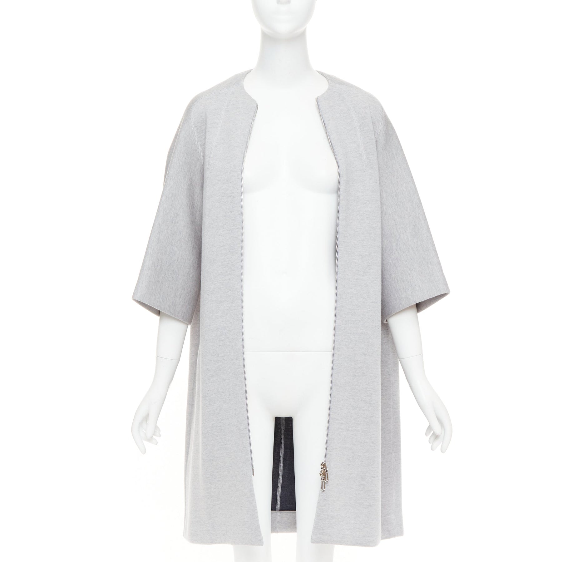 CHRISTIAN DIOR light grey virgin wool blend jersey cocoon half sleeve coat FR36 S