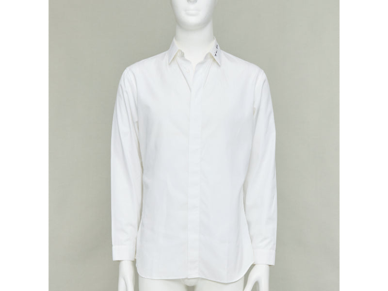 DIOR HOMME white cotton black scribble embroidered collar dress shirt EU39 M