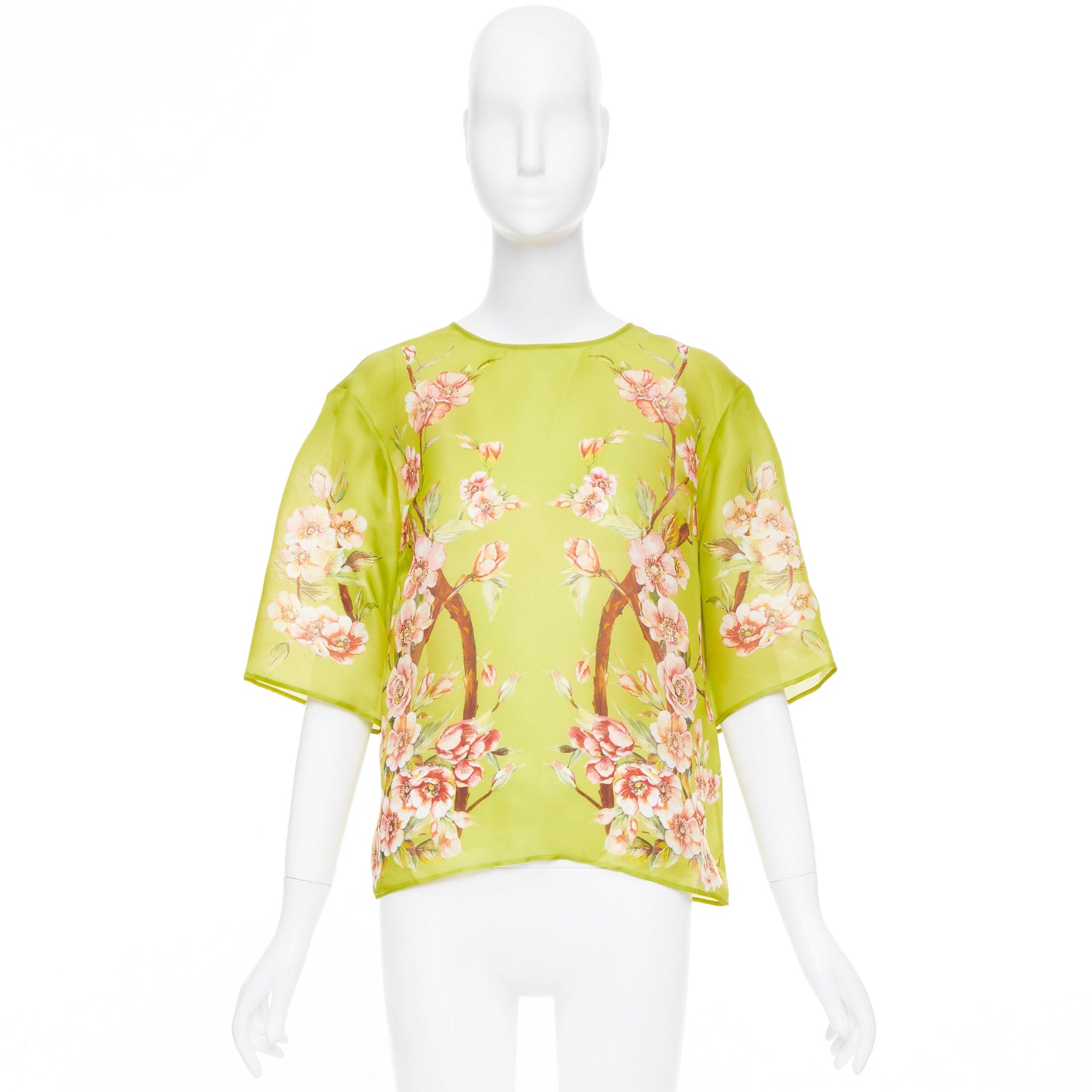 DOLCE GABBANA 100% silk green pink blossom print half sleeve blouse IT40 S