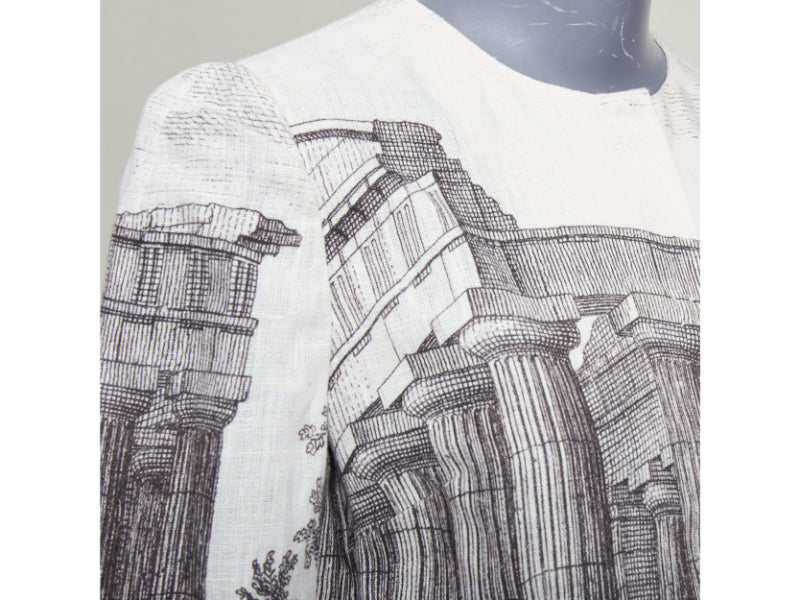 DOLCE GABBANA 2014 cream linen grey Greek Temple printed flax crop jacket IT40 S