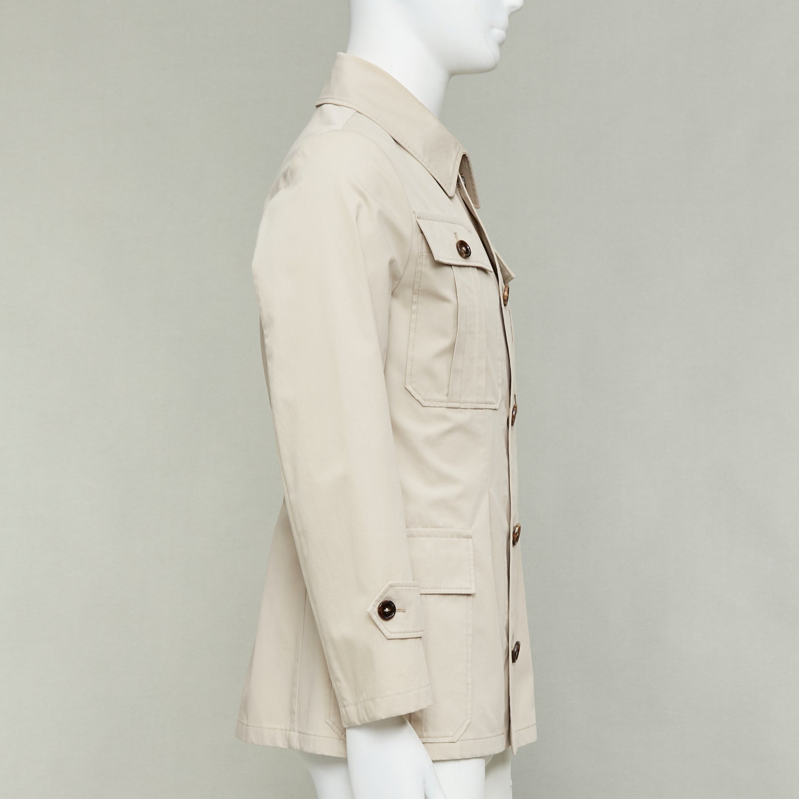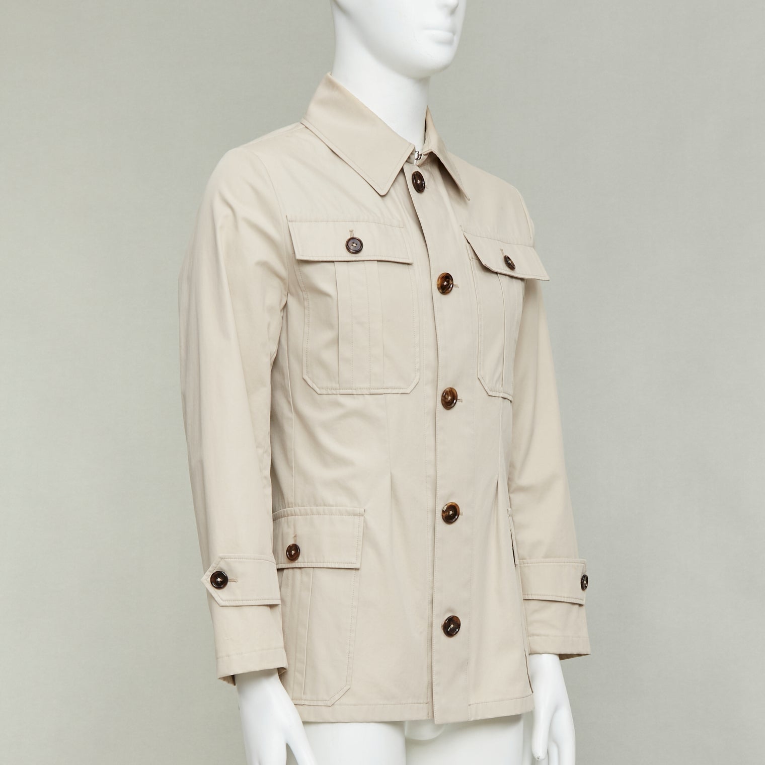 DOLCE GABBANA beige cotton brown horn buttons pockets field jacket IT44 XS