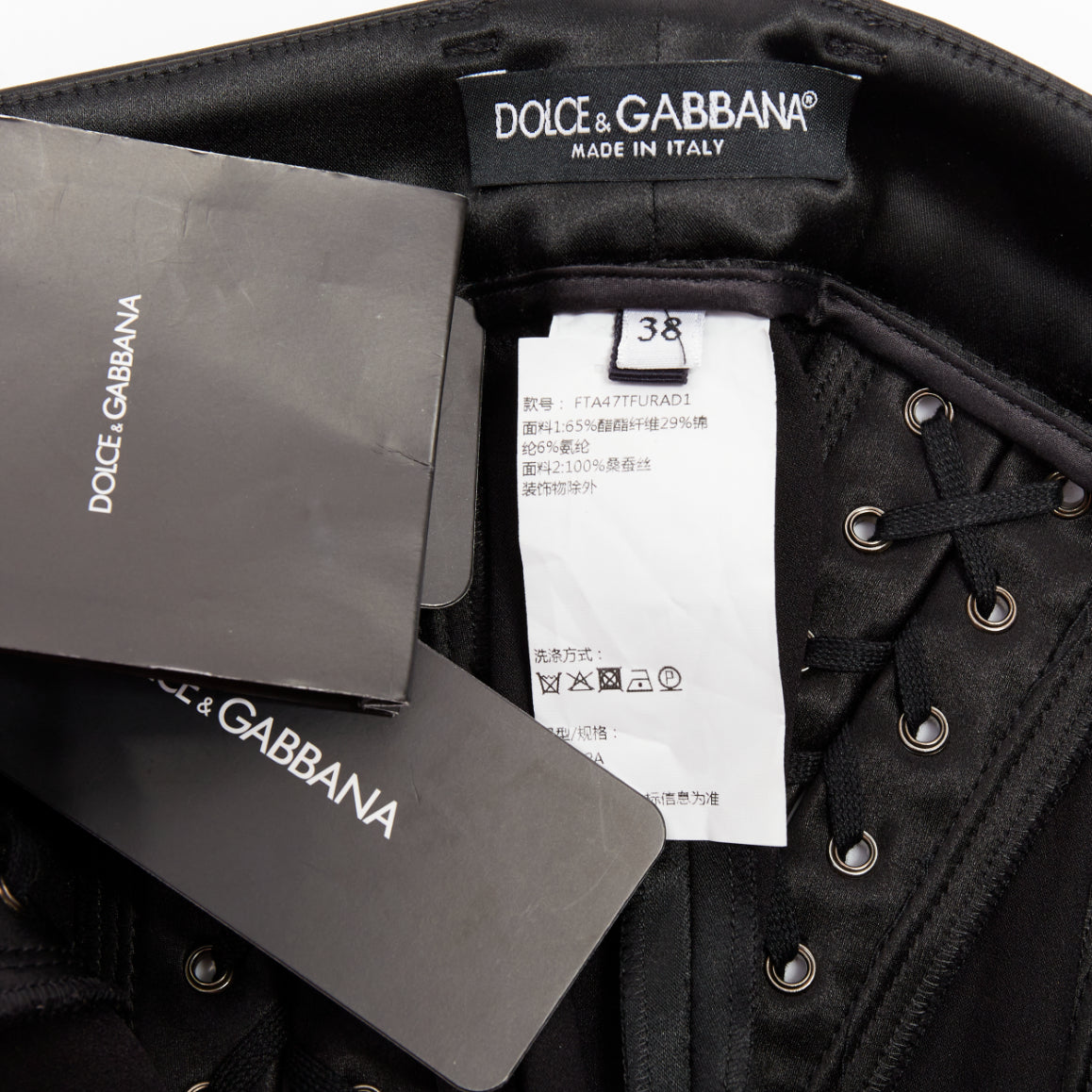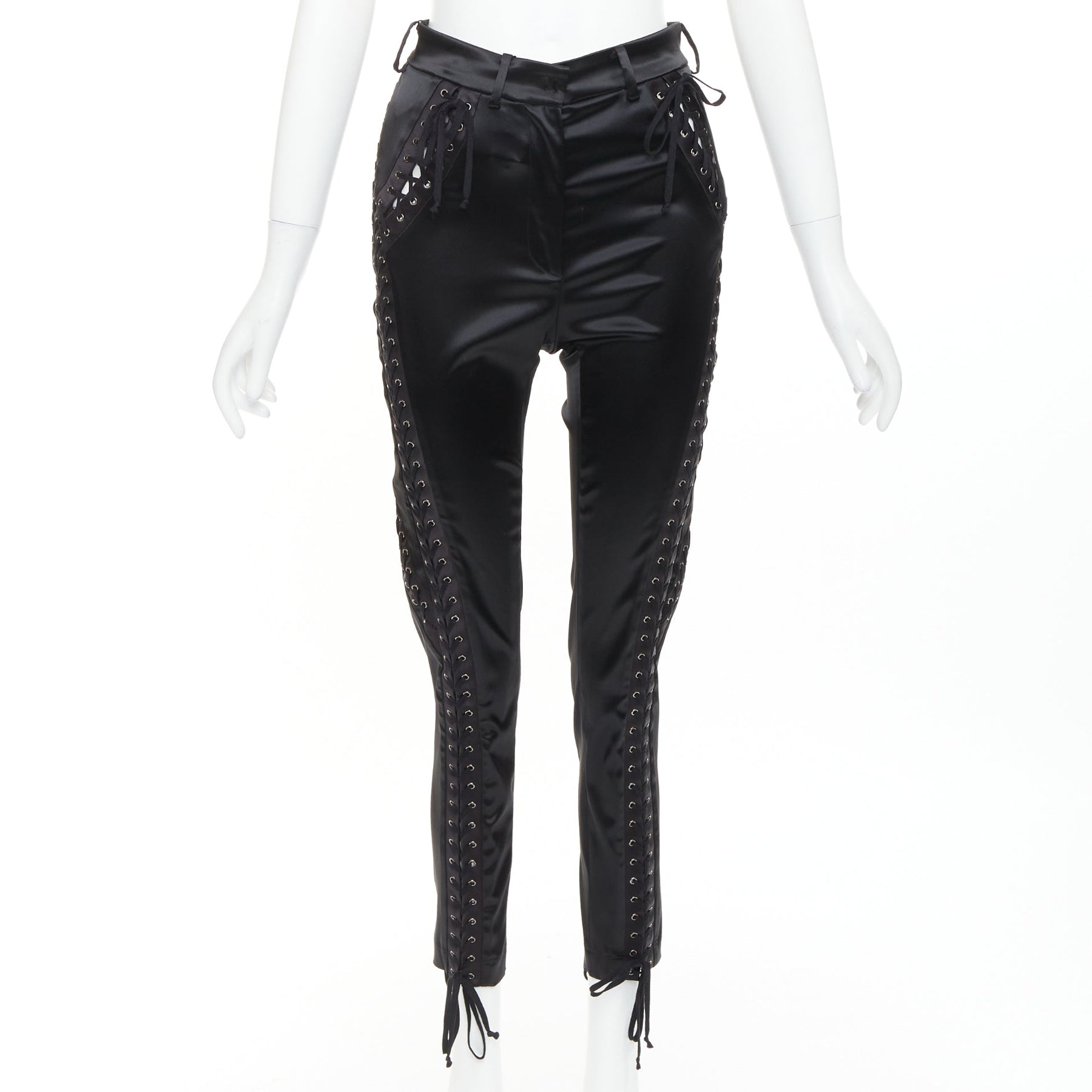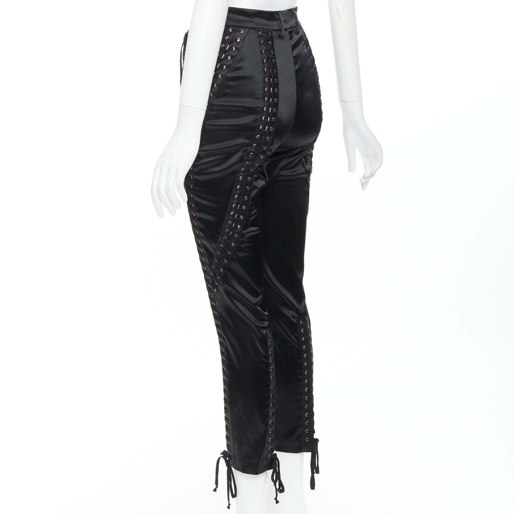 DOLCE GABBANA black satin eyelet corset lace detail cropped skinny pants IT38 XS