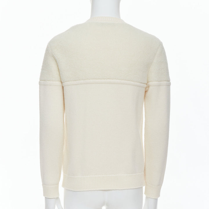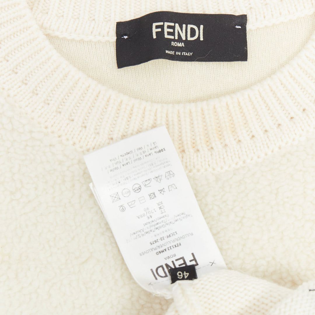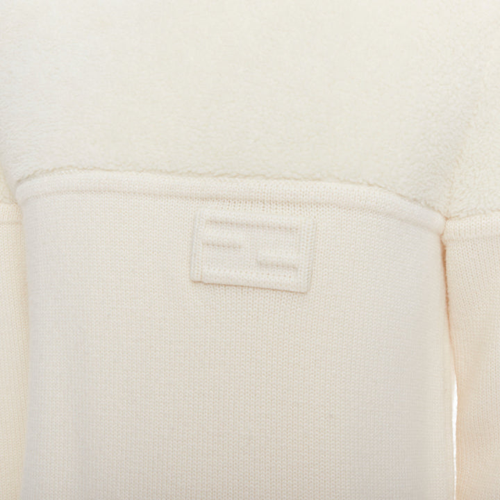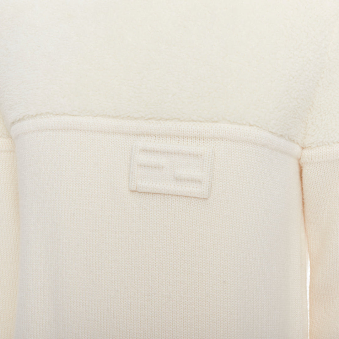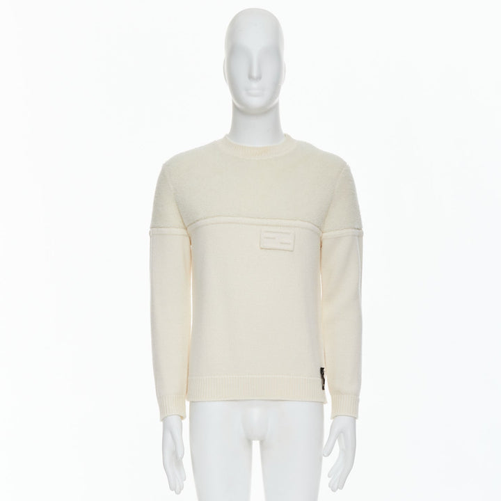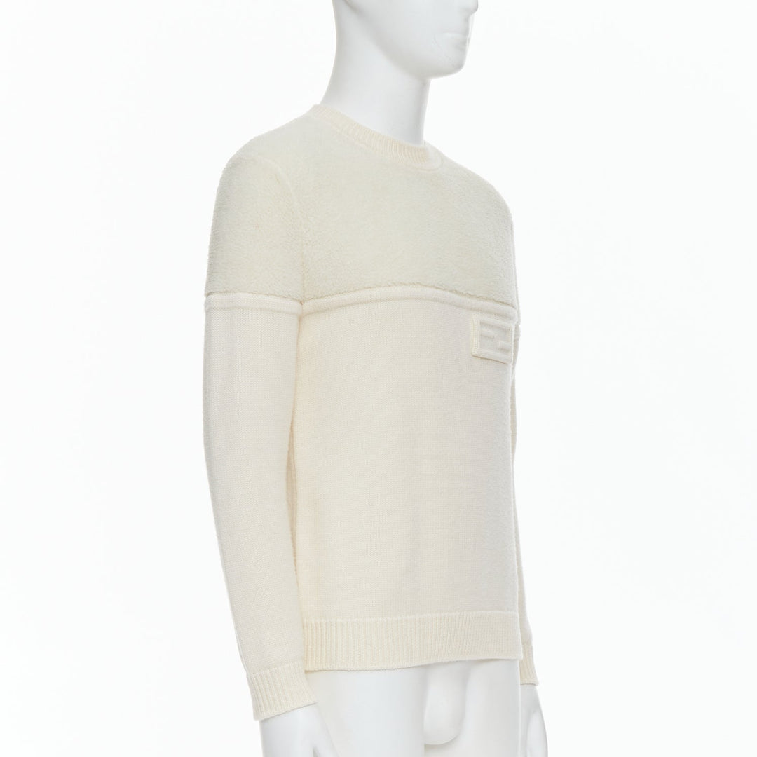 FENDI 100% wool fleece cream panelled logo applique sweater IT46 S