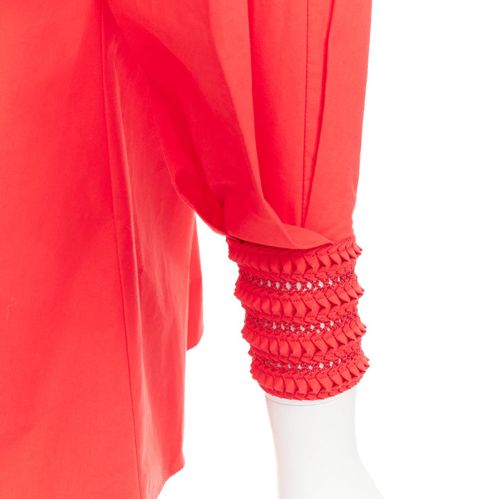FENDI 2016 Runway red cotton silk ruched knot weave collar peasant top IT38 XS