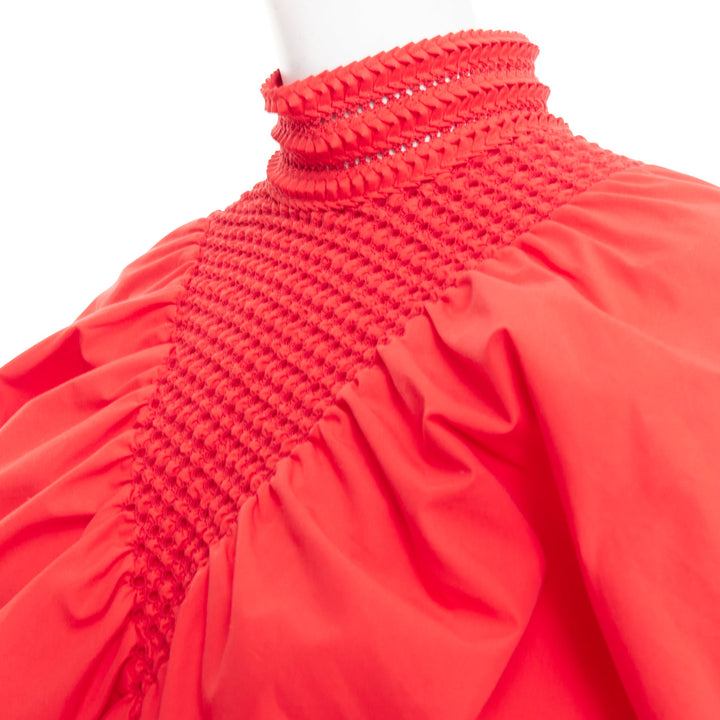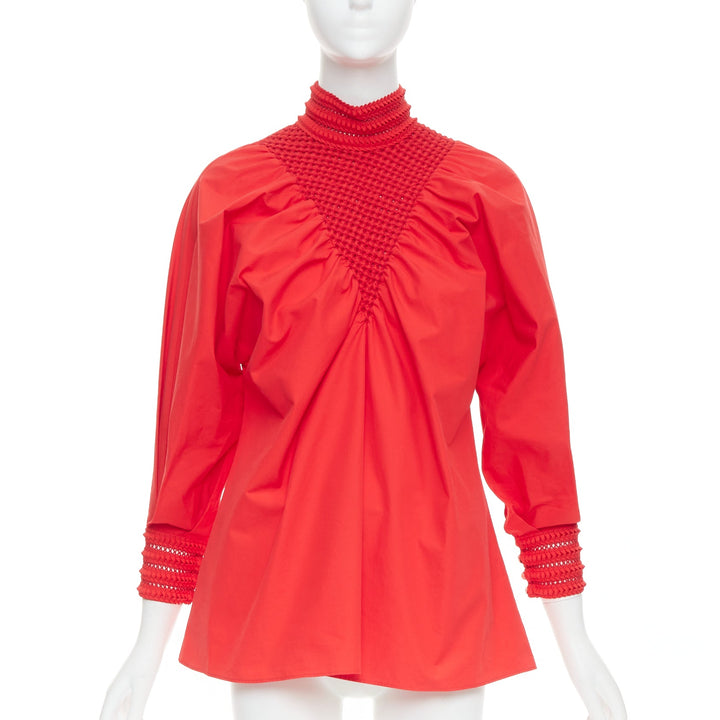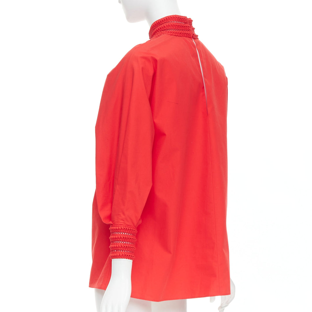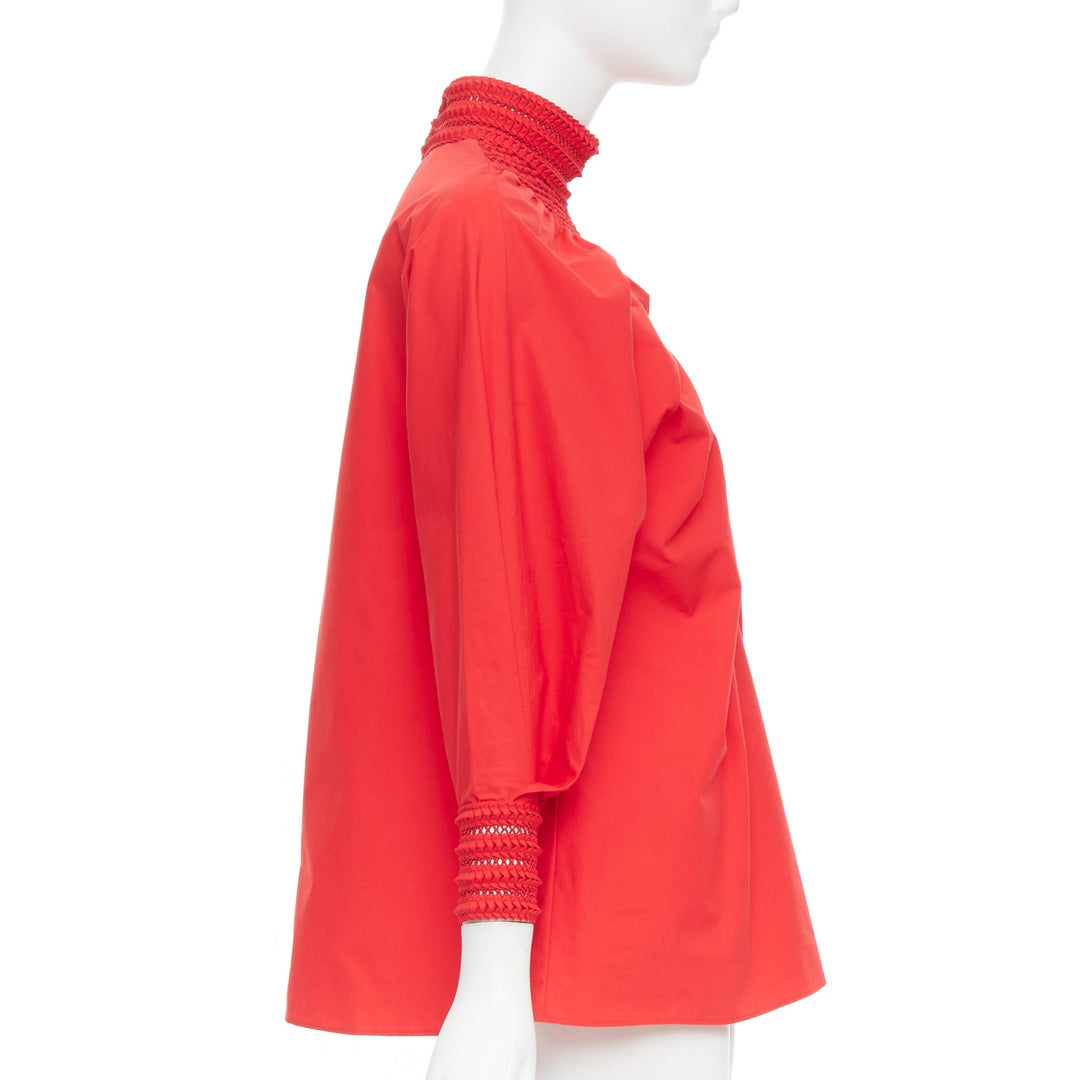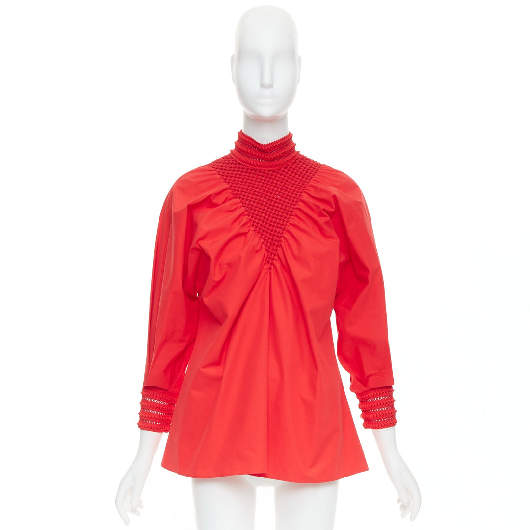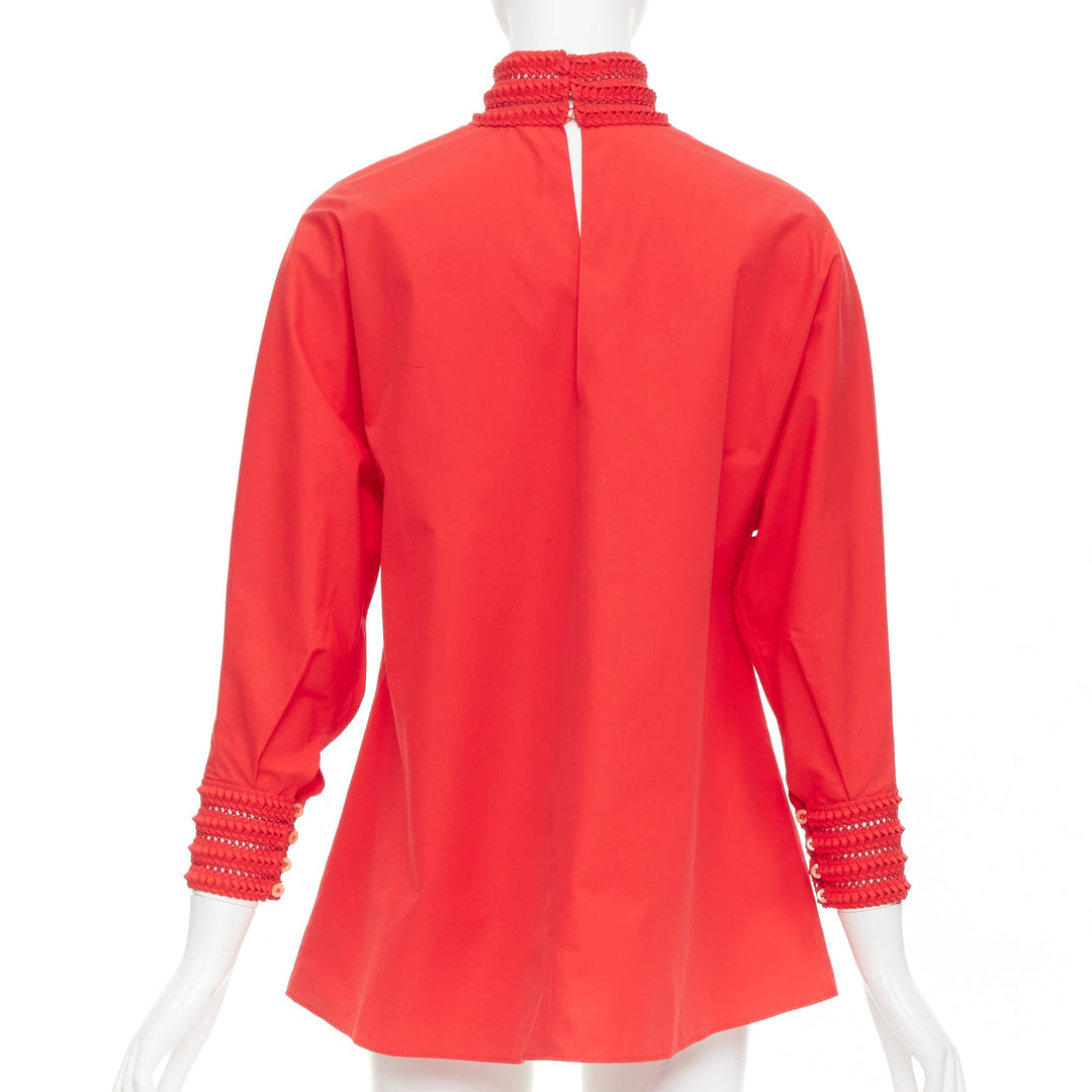 FENDI 2016 Runway red cotton silk ruched knot weave high collar peasant tunic top IT38 XS