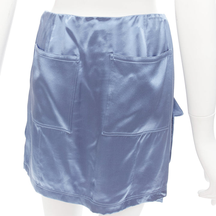 FENDI 2023 Runway Baguette blue satin FF buckle cargo pocket skirt IT38 XS