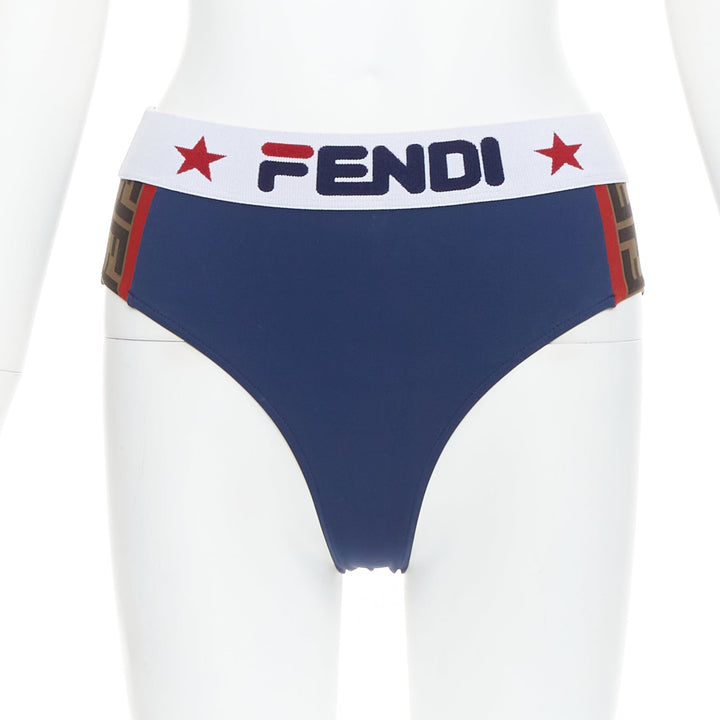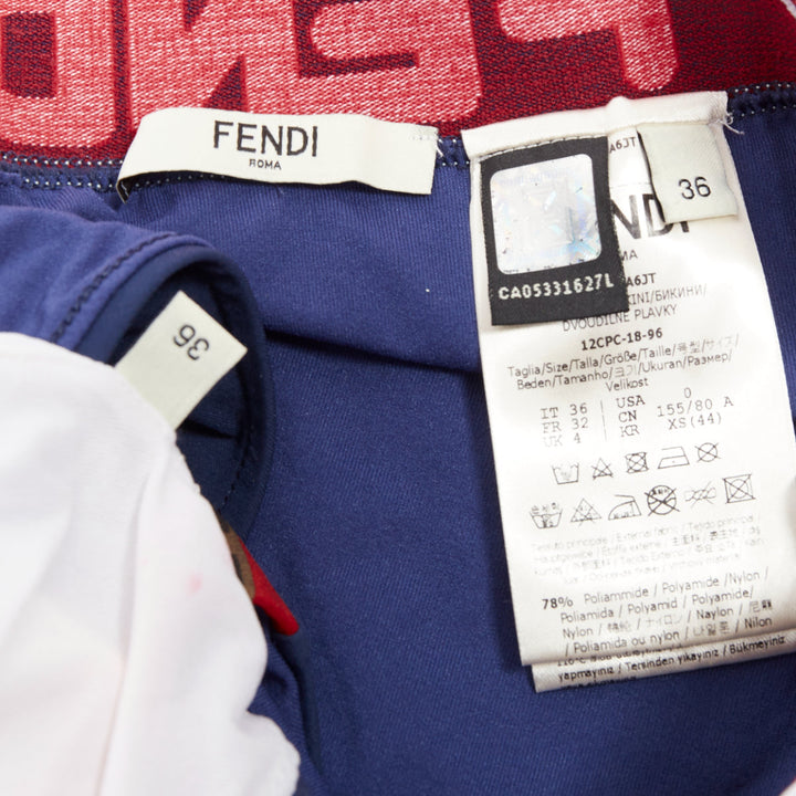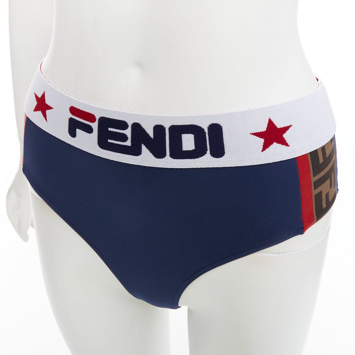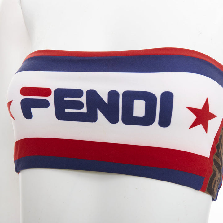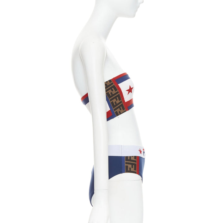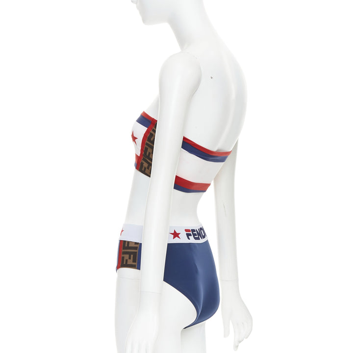 FENDI FILA blue red white logo star colorblock bandeau bikini 2-pc swim set IT36 XXS