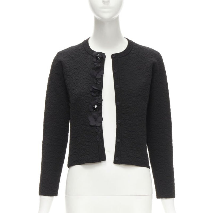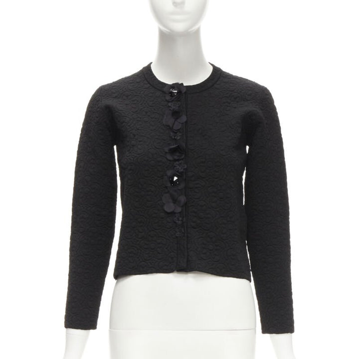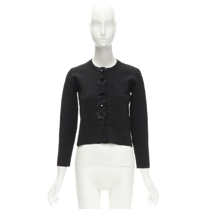 FENDI Flowerland black floral jacquard 3D petal stud cardigan IT36 XS