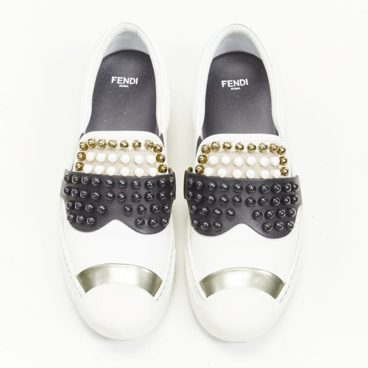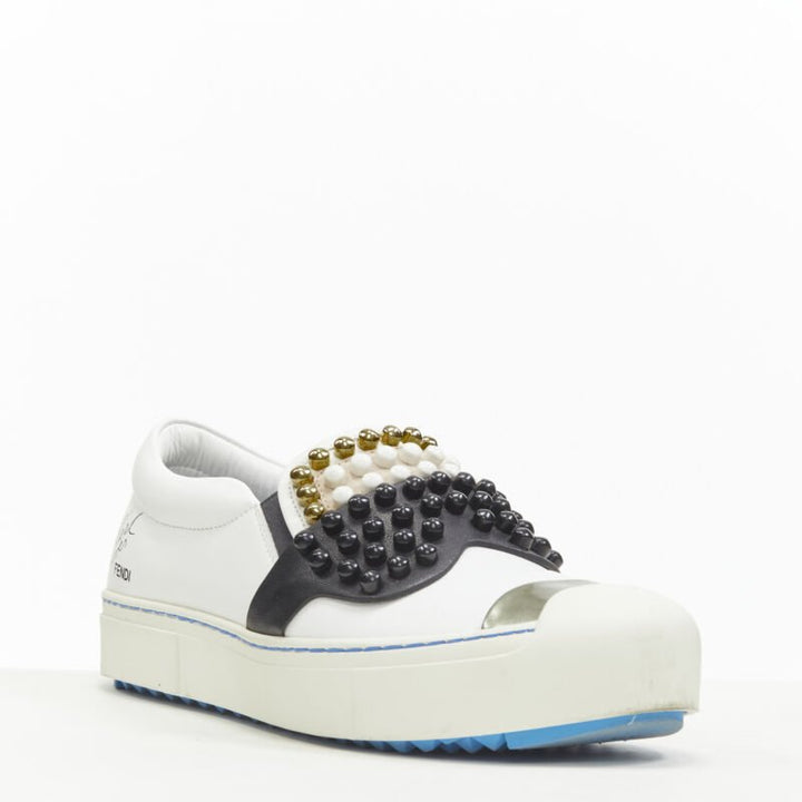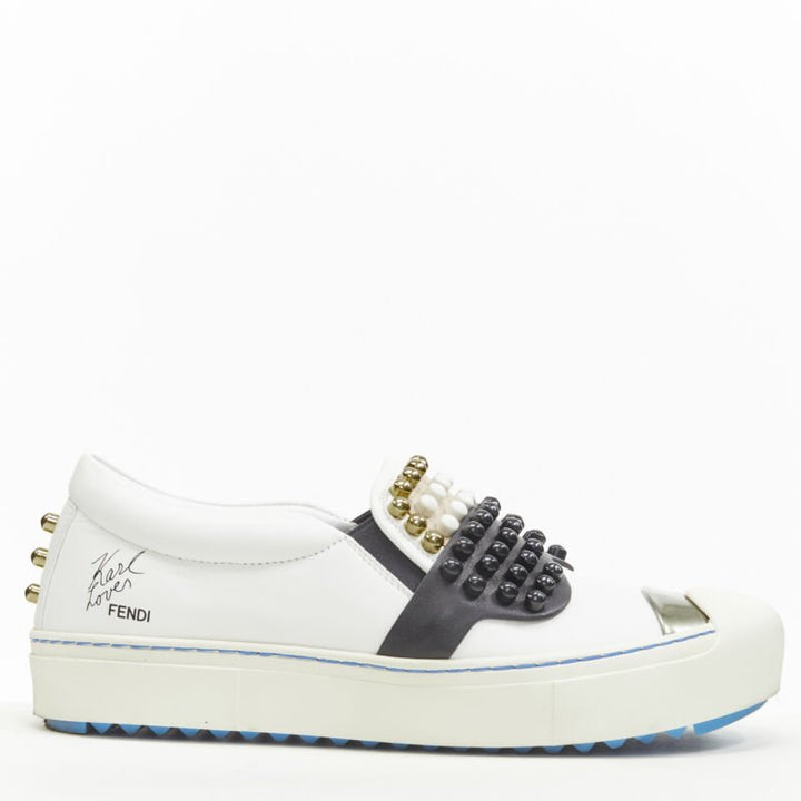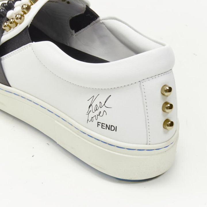 FENDI Karl Loves studded Karlito white leather skate sneakers EU36.5