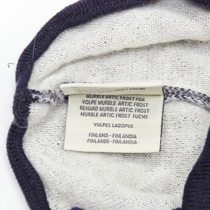 FENDI Monster Bug Eye 100% wool arctic fox fur trim navy purple beanie hat
