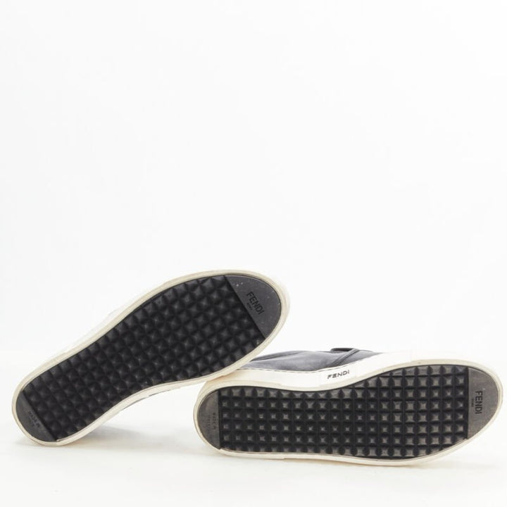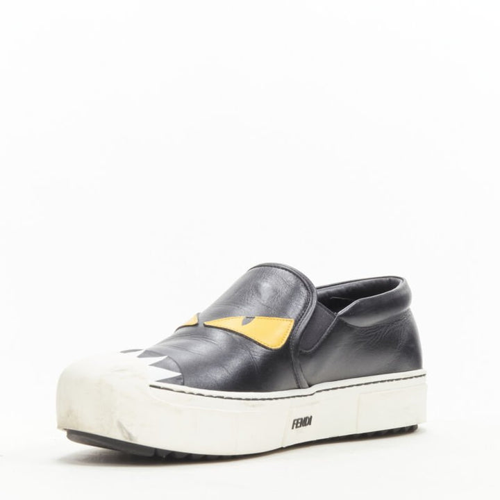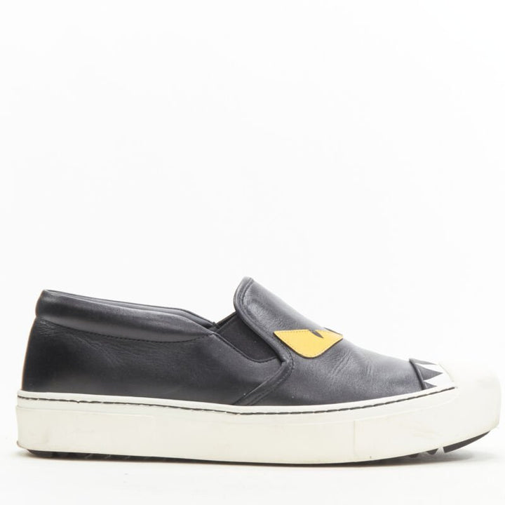 FENDI Monster Bug Eye black yellow leather slip on skate sneakers shoes EU36.5