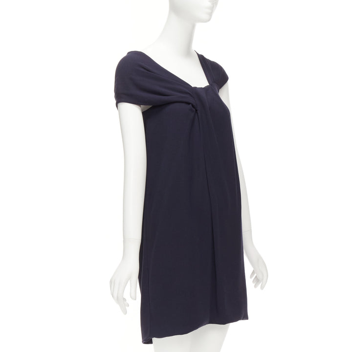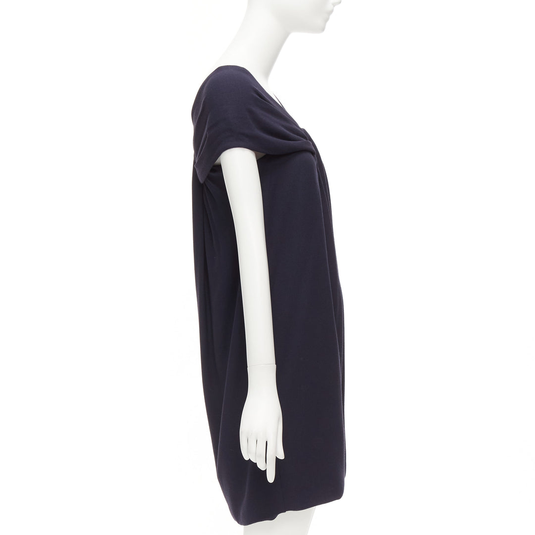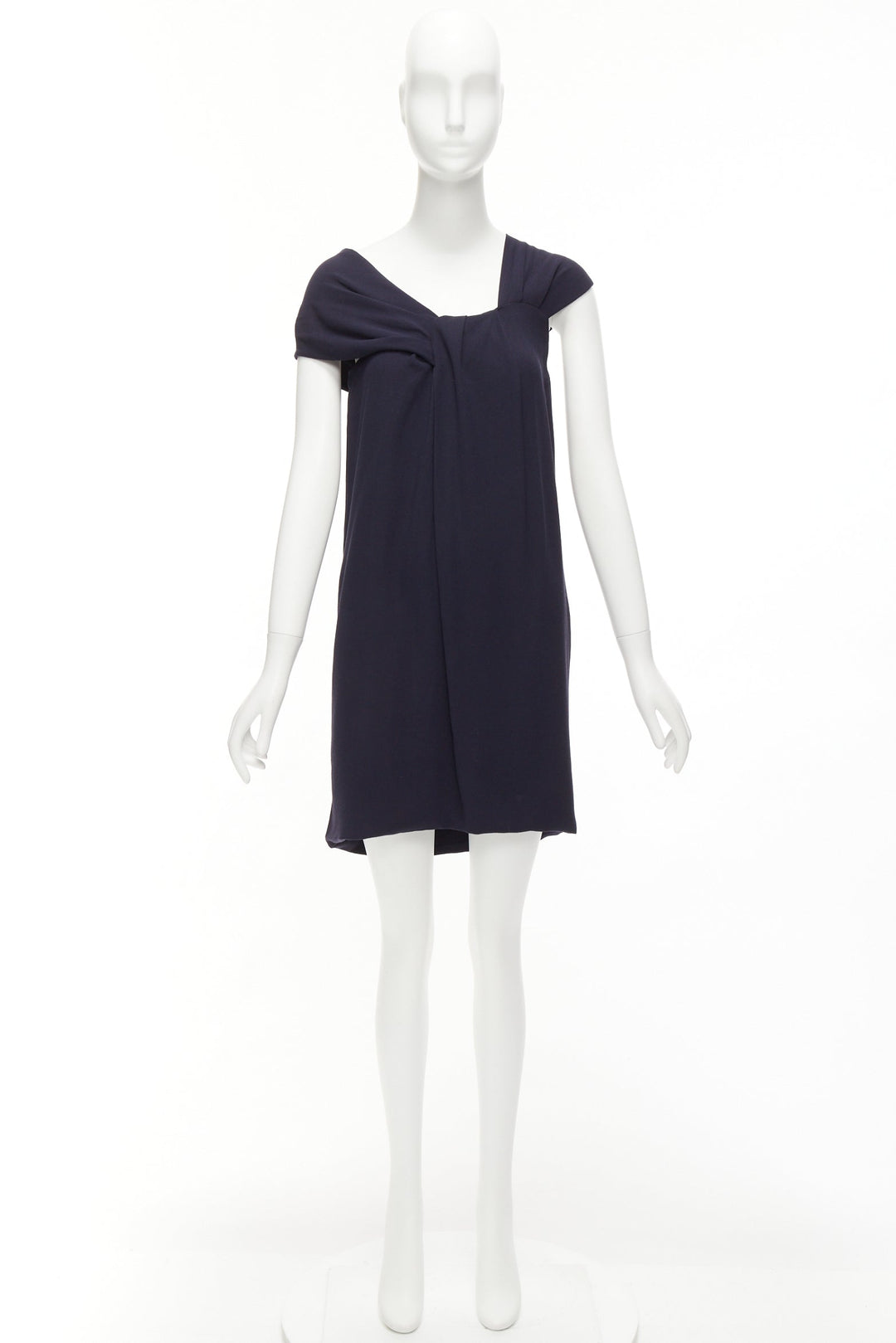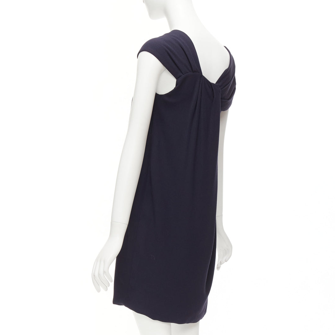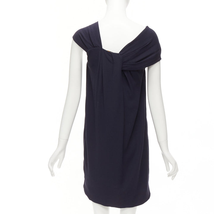 FENDI navy viscose wool asymmetric pleated collar silk lined mini dress IT38 XS
