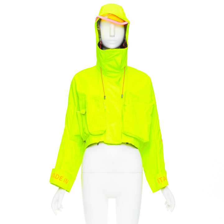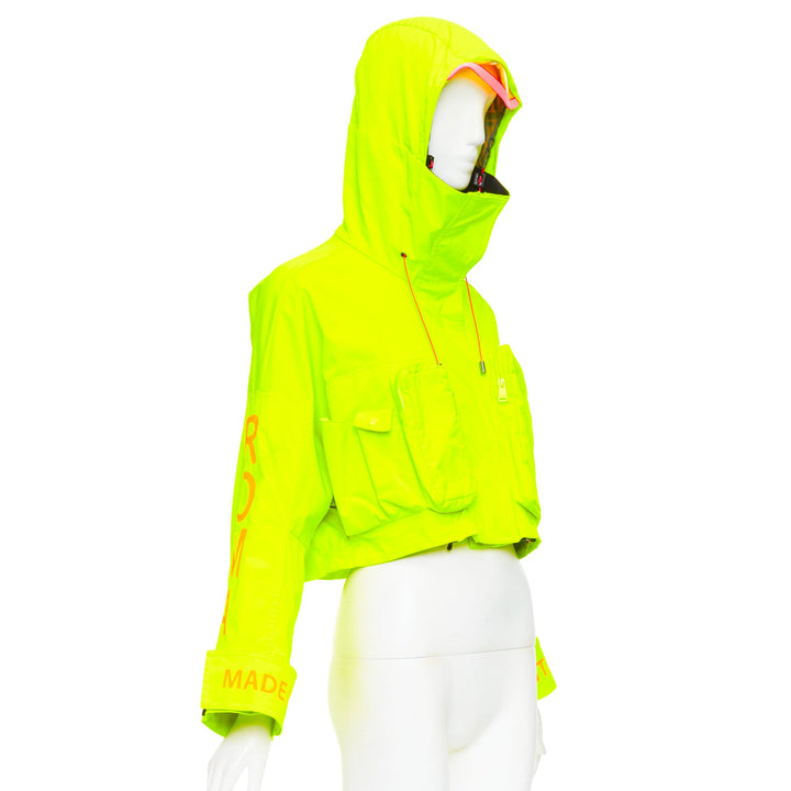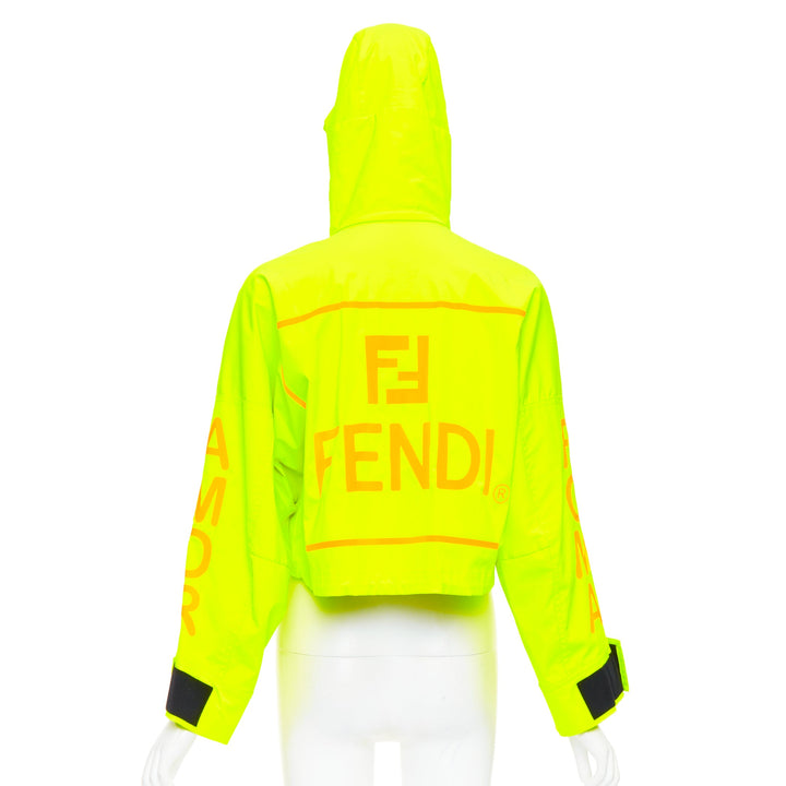 FENDI neon yellow orange roma logo multi pocket cropped anorak IT36 XXS