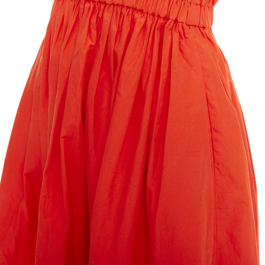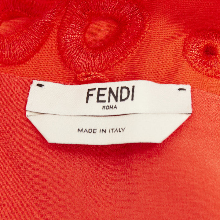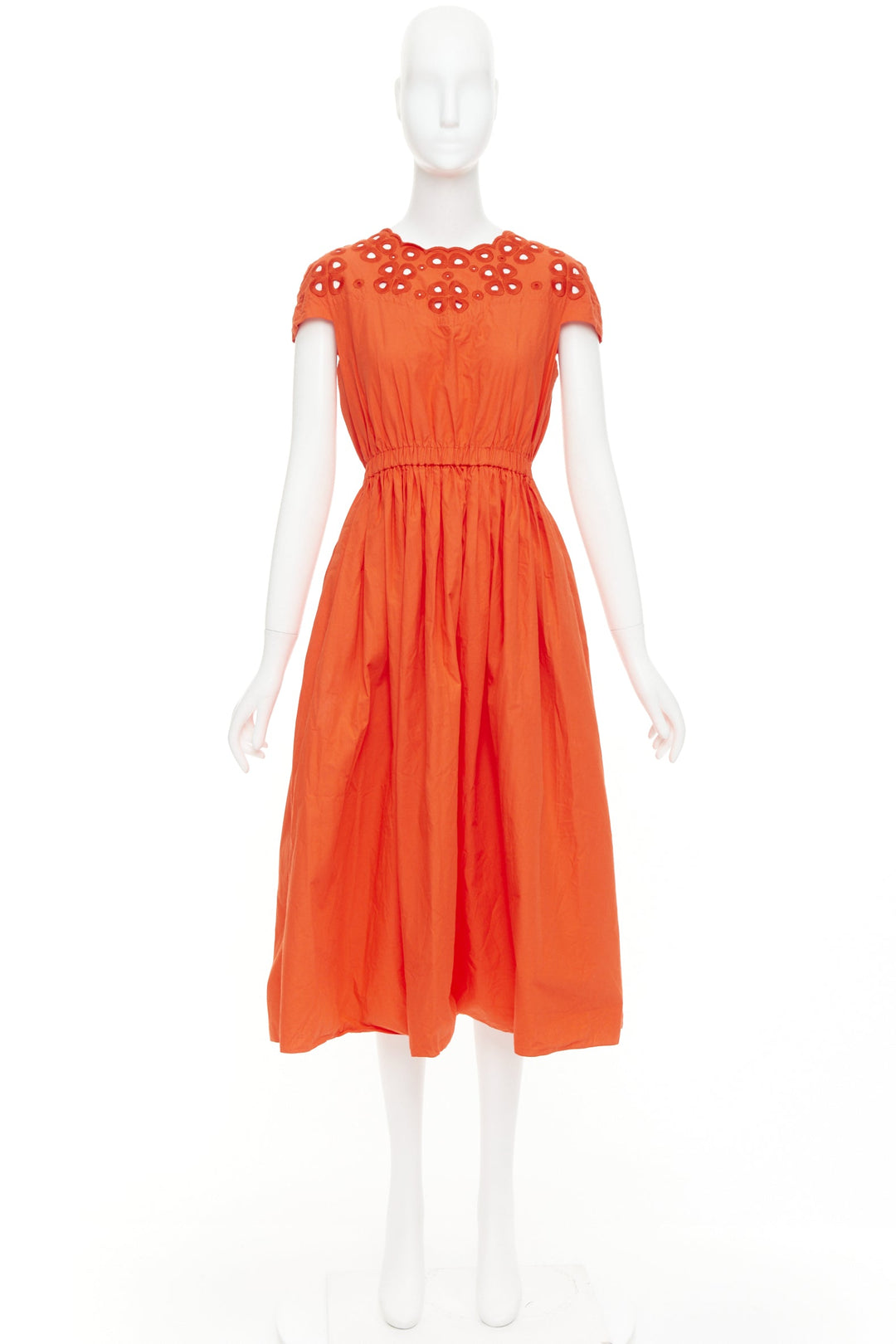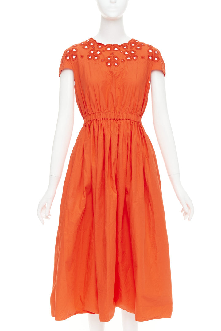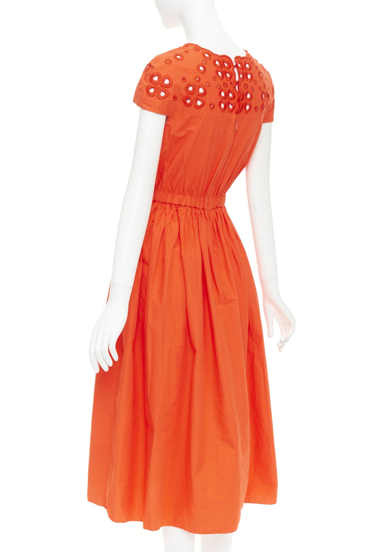 FENDI orange poplin embroidered eyelets ruched cap sleeve sundress