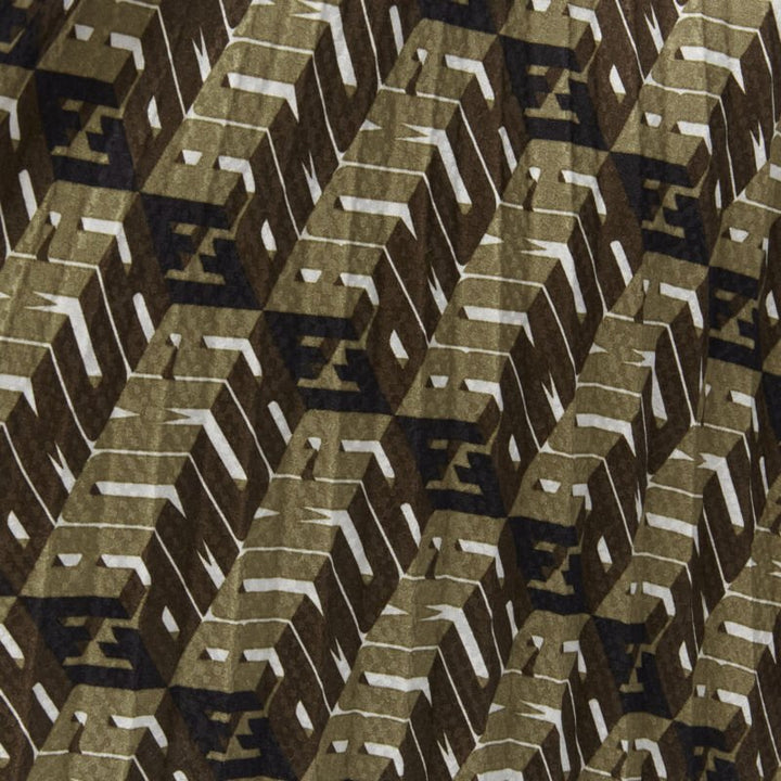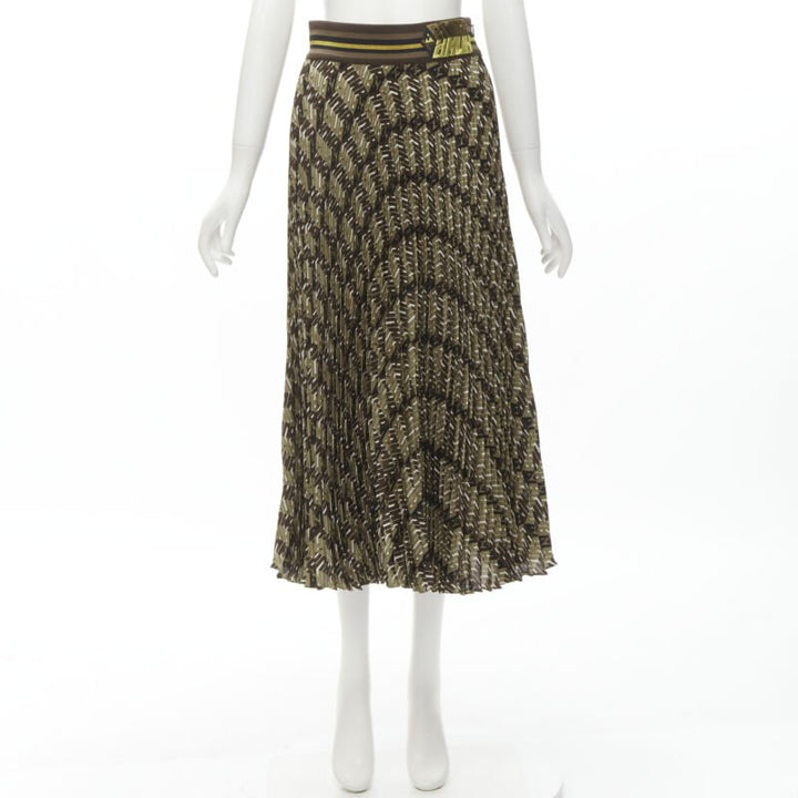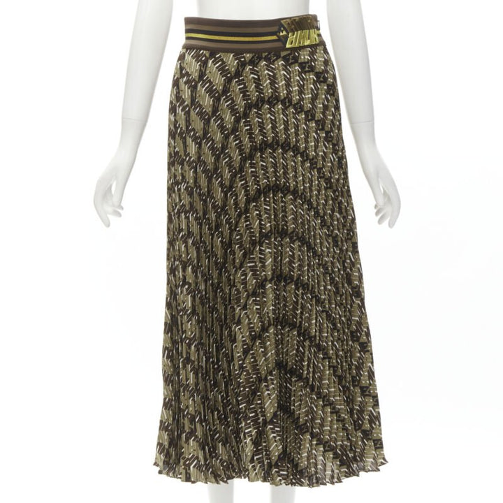 FENDI Roma Amor brown gold graphic print pleated plisse silk skirt IT42 M