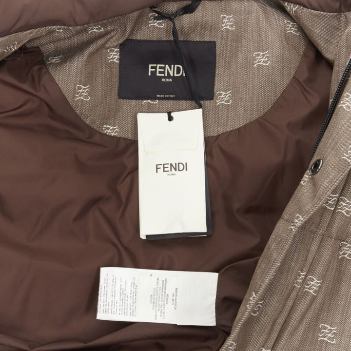 FENDI script FF Zucca monogram jacquard cotton down puffer vest jacket EU46