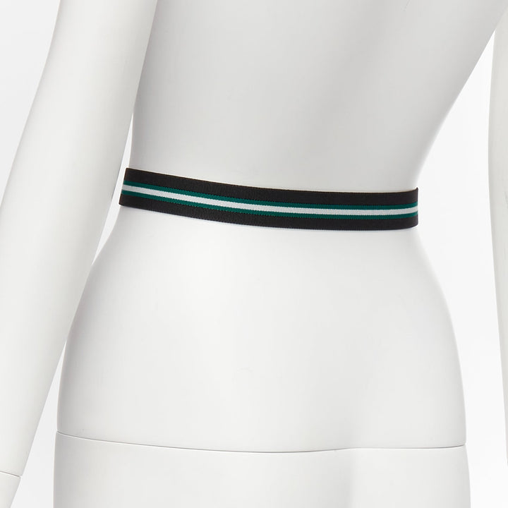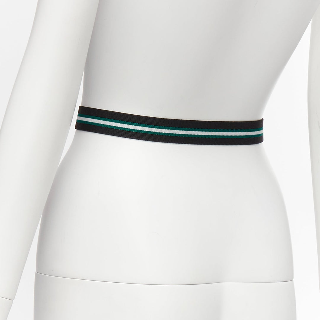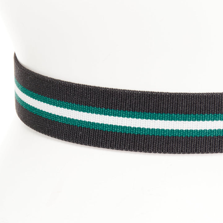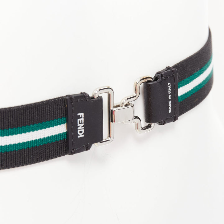 FENDI silver logo black green stripe stretch fabric leather skinny belt