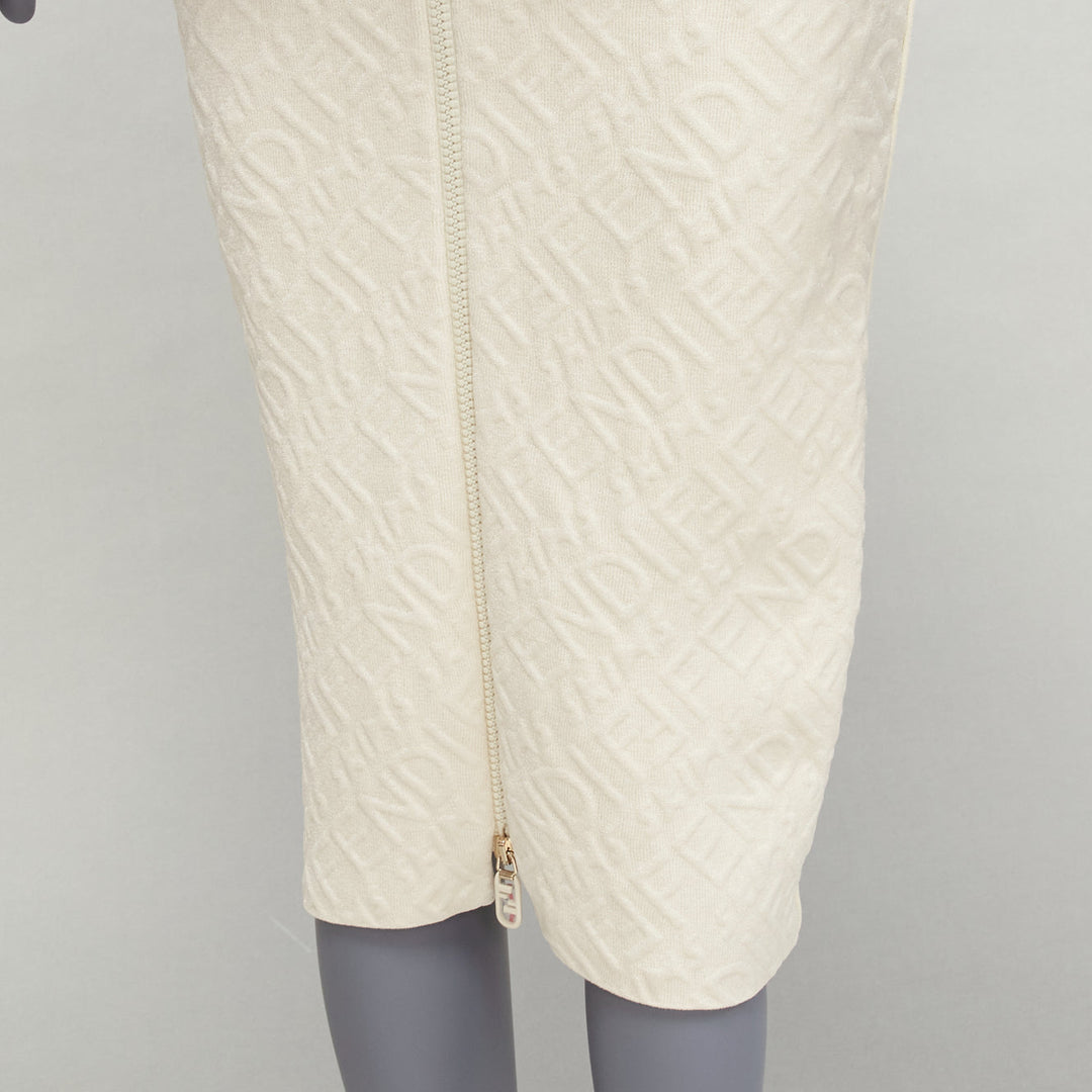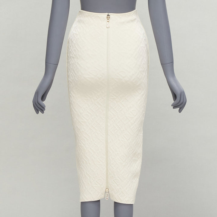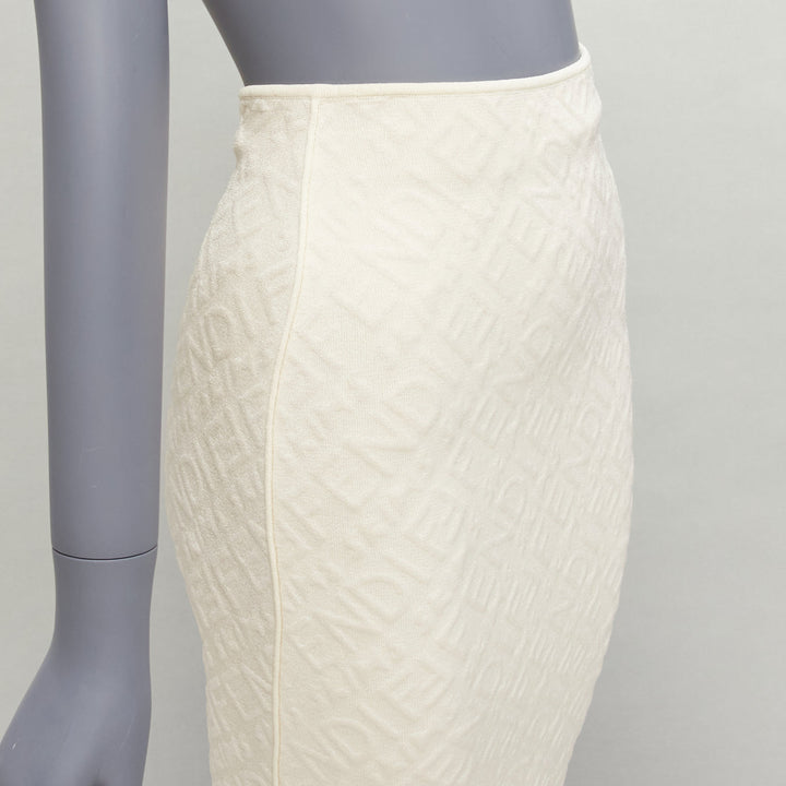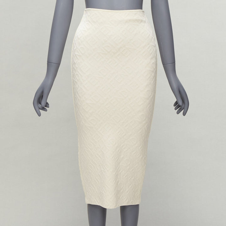 FENDI SKIMS cream logo jacquard high waisted pencil skirt IT36 XXS