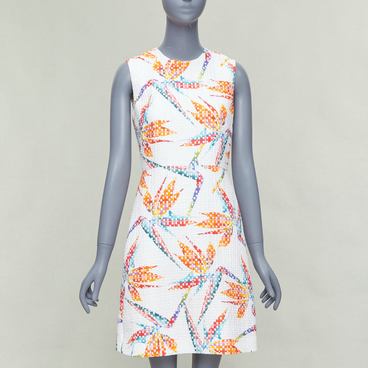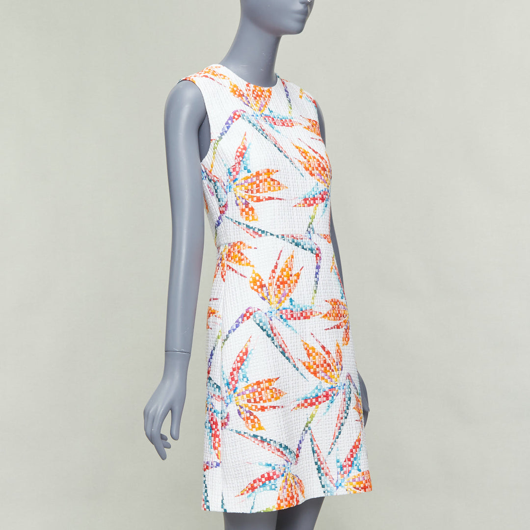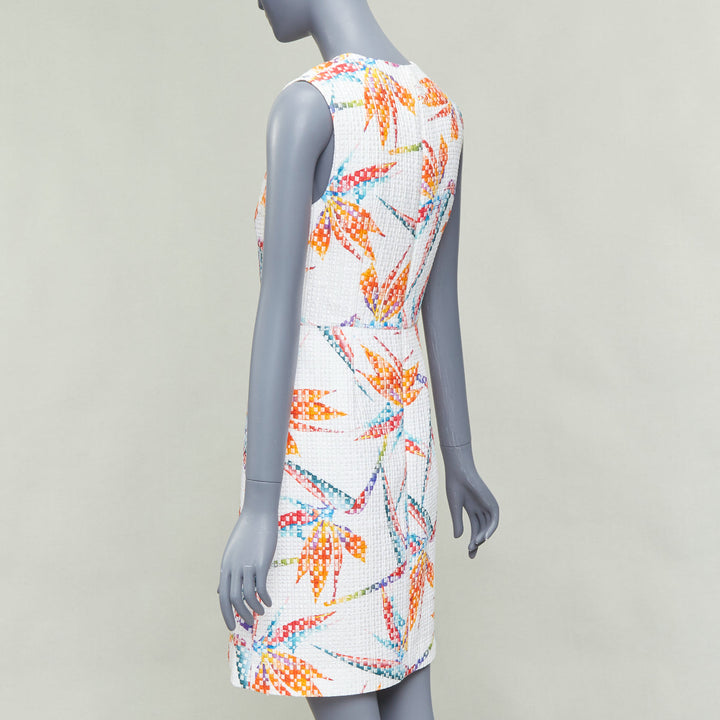 FENDI white orange bird of paradise jacquard cocktail dress IT38 XS