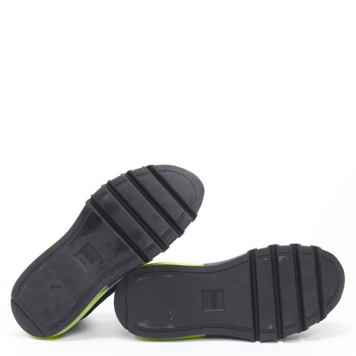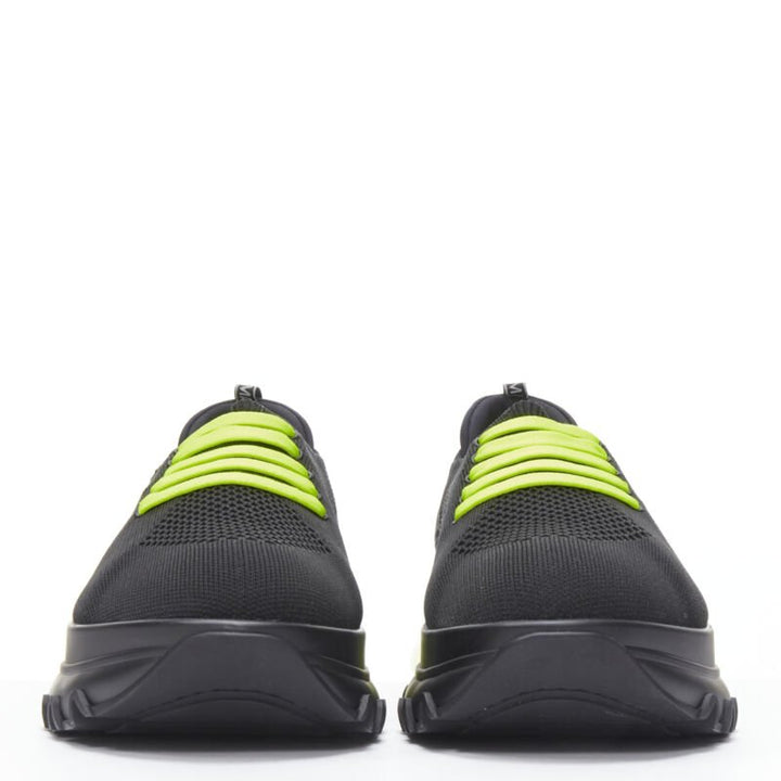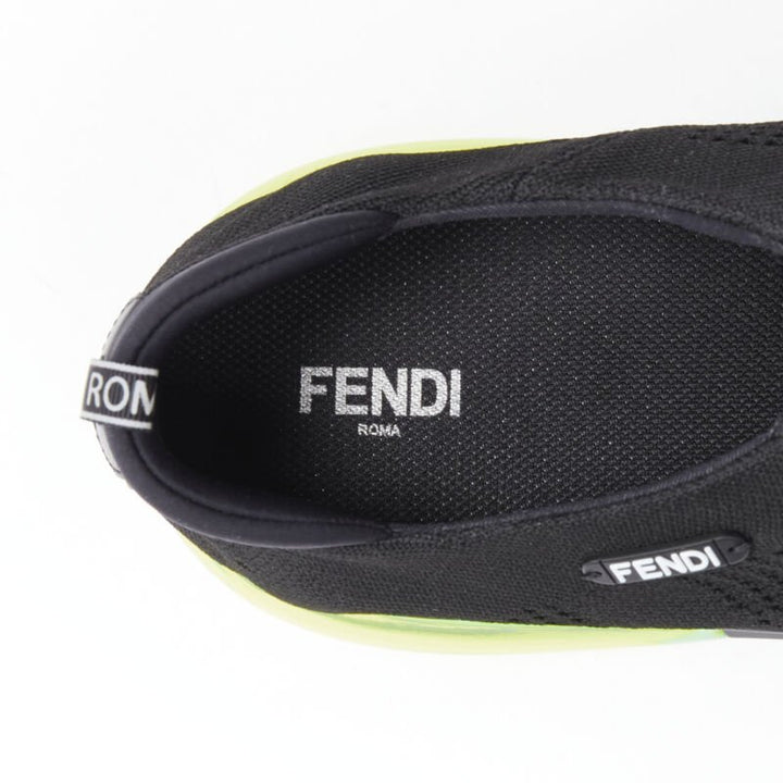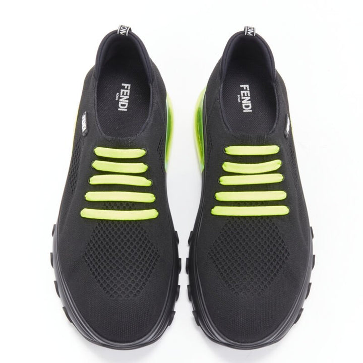 new FENDI 2019 black knit neon yellow air sole runner sneaker 7E1234 EU44 UK10