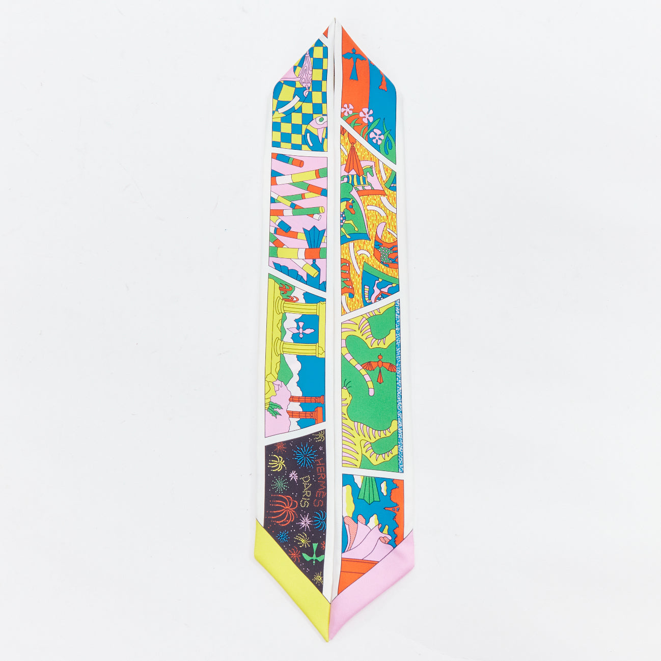 HERMES Factory Suite Twilly Baptiste Virot 100% silk multi tie slim scarf