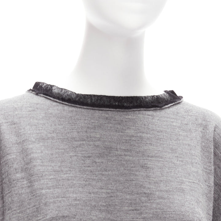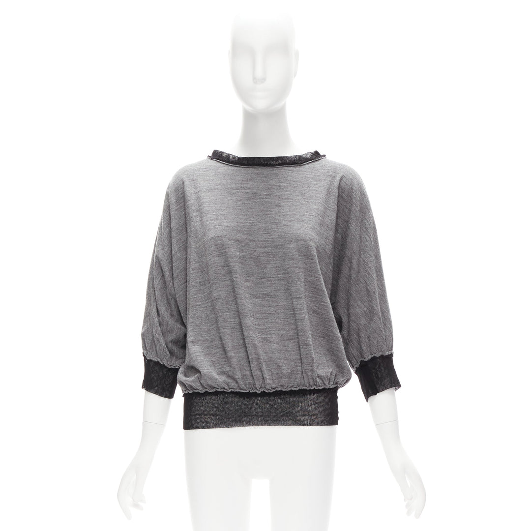LANVIN 2005 light grey wool cashmere mesh trim batwing sweater FR36 S