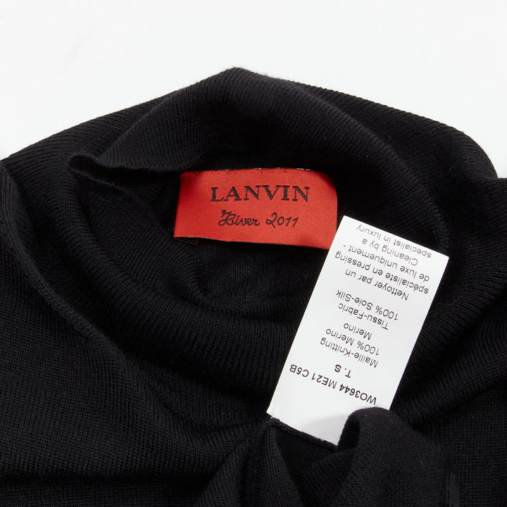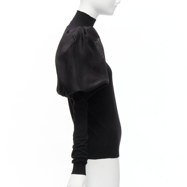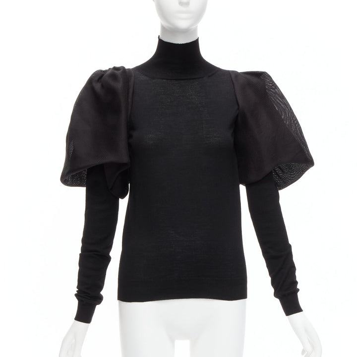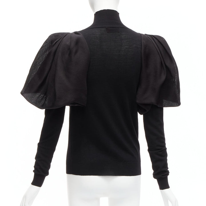 LANVIN 2011 black merino wool silk balloon puff sleeve turtleneck sweater S