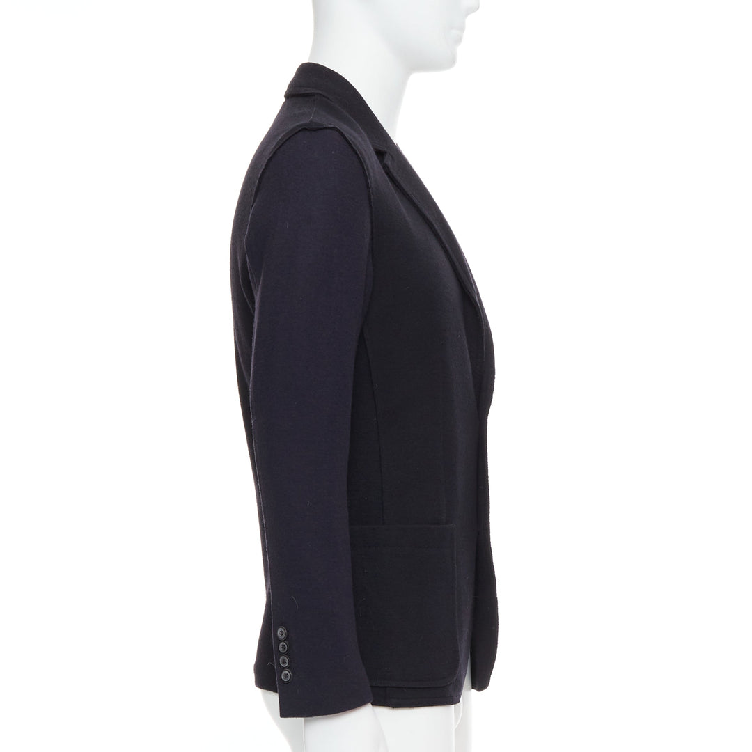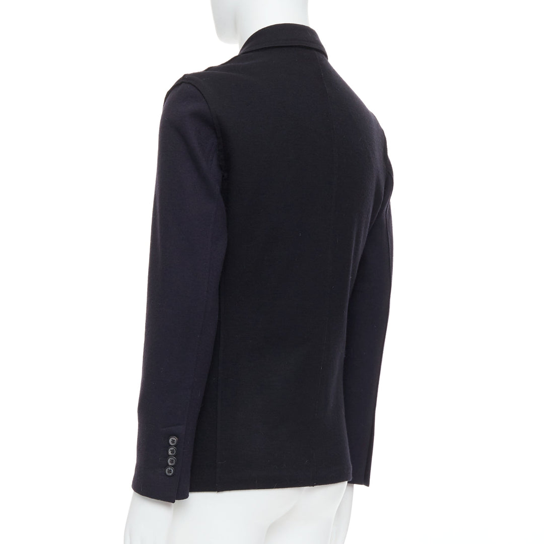 LANVIN black navy bicolour wool blend pocketed blazer jacket FR44 XS