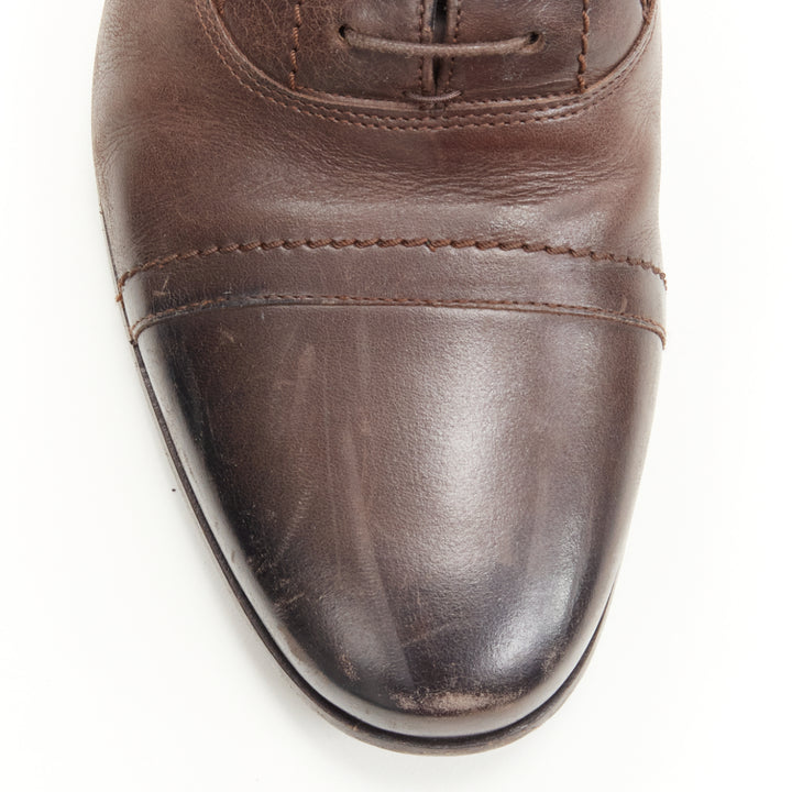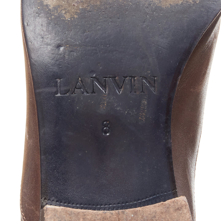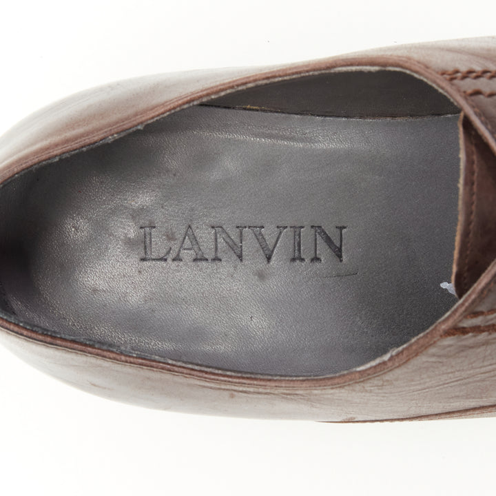 LANVIN brown calfskin lace up distressed scuffed leather dress shoes US8 EU41